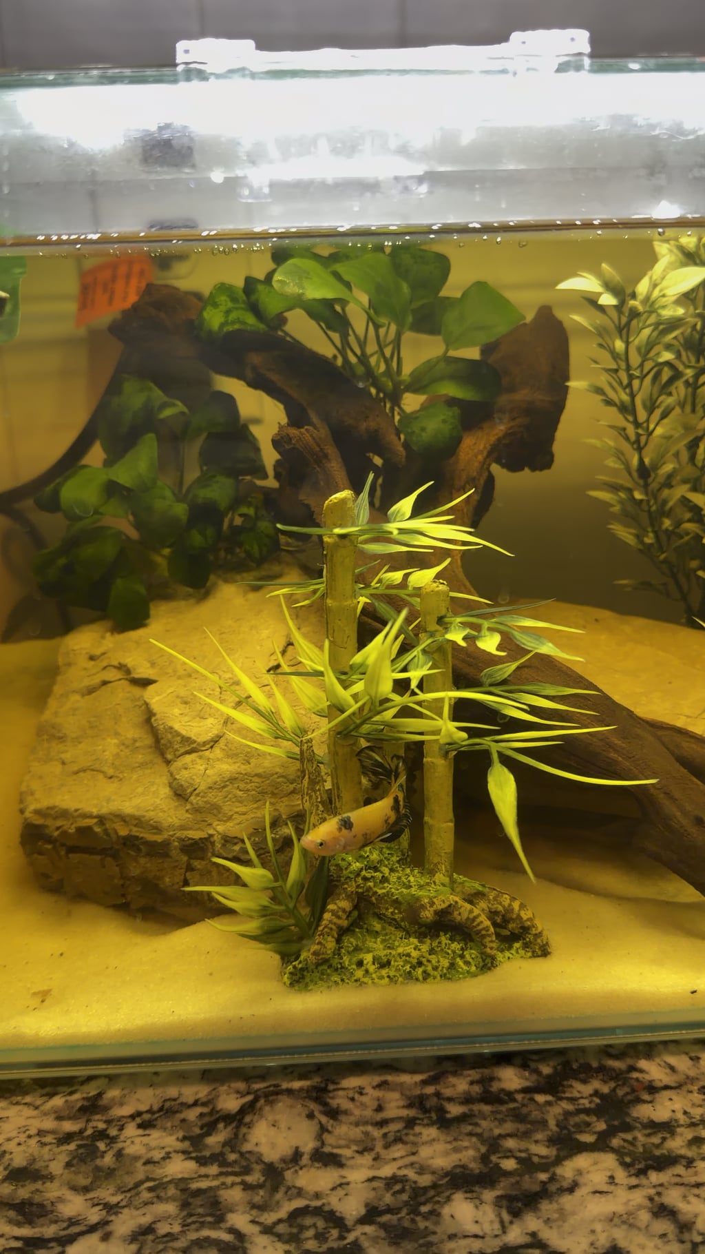 We added almond leaves to his tank.