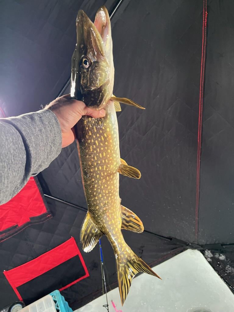 Phone slipped out of bib pocket because I did not have it zipped up, hit the ice and slid right down the hole. I did manage to get some fish and a picture before disaster struck. Keep your pockets zipped up out there.