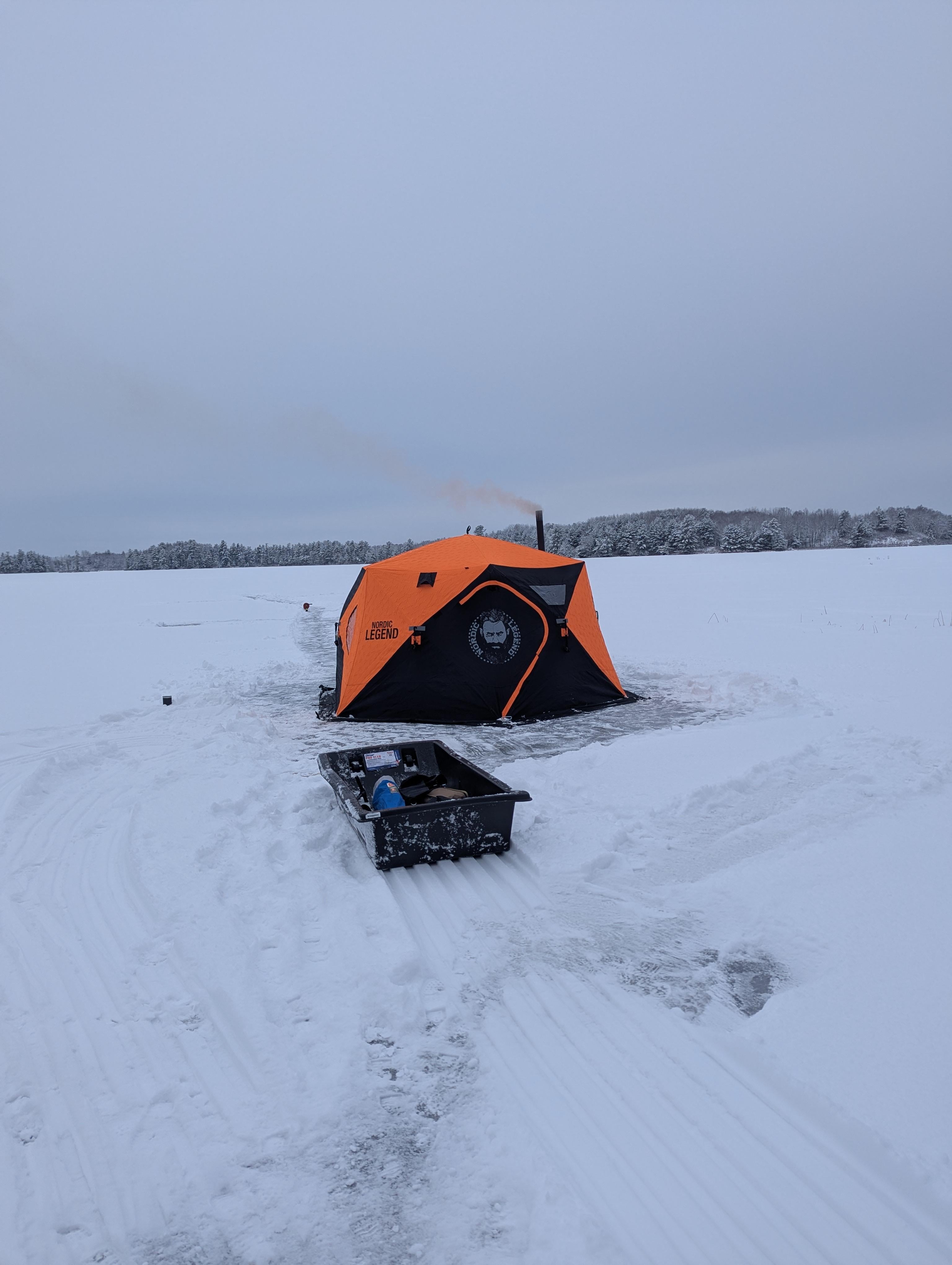 Went out for the first time this year, with my new setup. Always used a much smaller tent with a buddy heater and went solo..Now I have a small stove and a tent big enough for the family. Lol