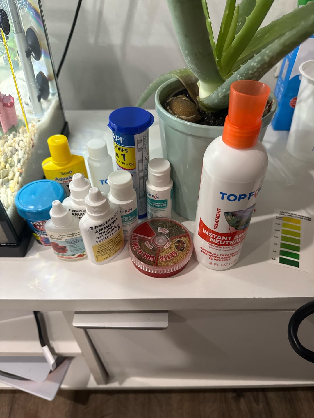 I did everything right and I have his old bowl next to the tank but my brother removed his plant and washed it the placed it in the new tank. I then added some of his rocks and a little fish toy thingie from his bowl to add bacteria to the new tank. The reading from his old bowl had higher levels than the new one.