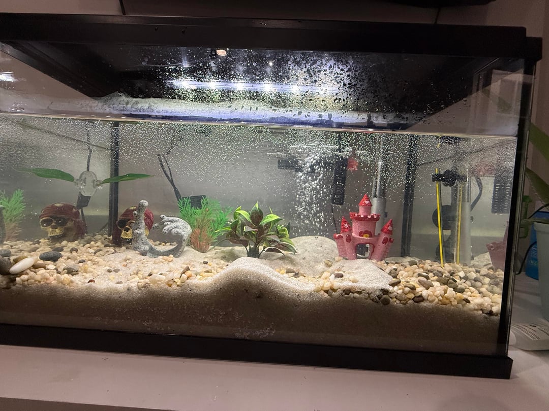 I started partial water changes and then I researched and found out that they need more space so I got a 10 gallon aquarium kit.