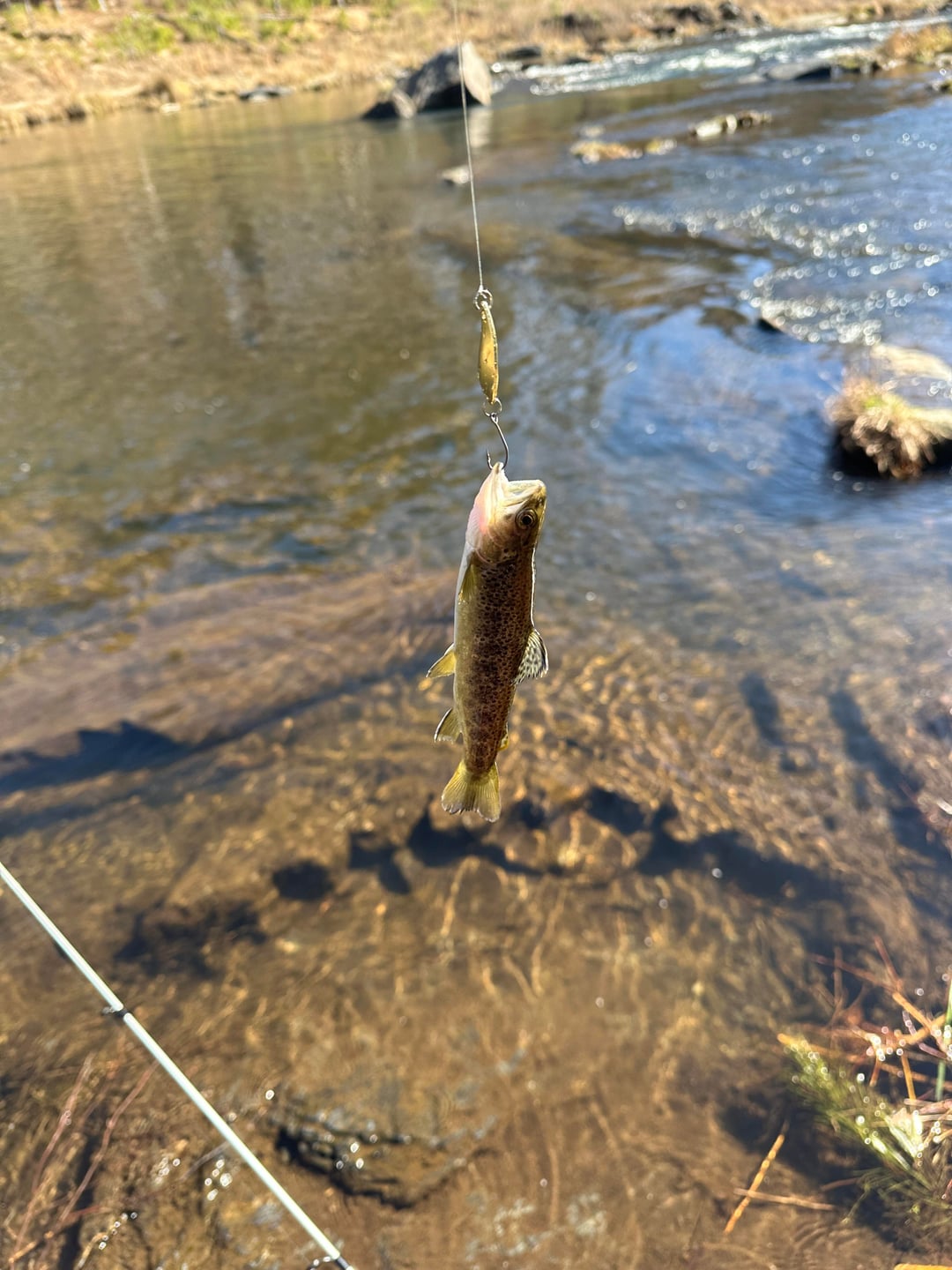 I went on a camping trip and decided to fish for trout for the first time! I used a spinning reel, I started with salmon eggs and a rooster tail and had no luck. Switched to a little 2.5g spoon and boom … left and right. Caught about 15 but sadly all were tiny so they had to go back! It was fun can’t wait to do it again.