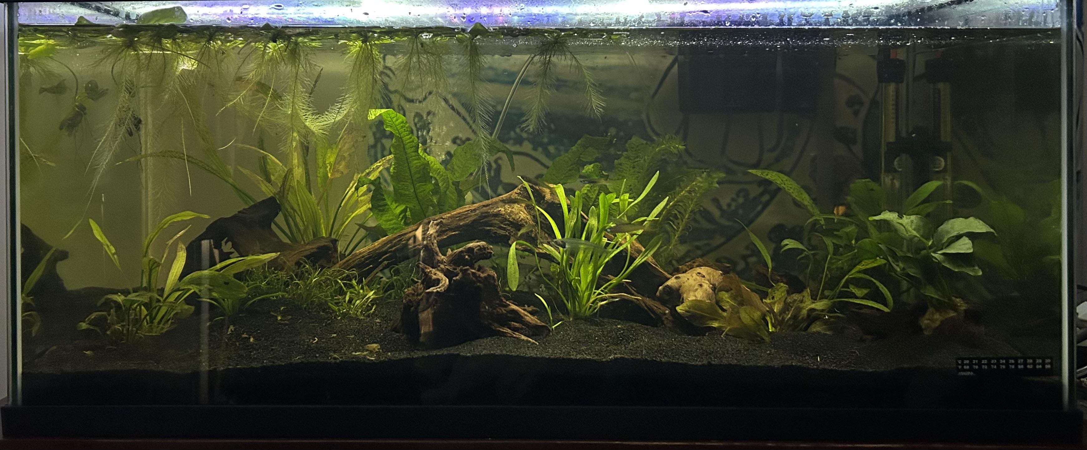As stated, I’ve been pretty disappointed in my tank lately. Both visually and stocking wise. Current stock is 1x bristlenose pleco, 9x glass catfish, 3x kuhli, and 6x threadfins (only 1 male)