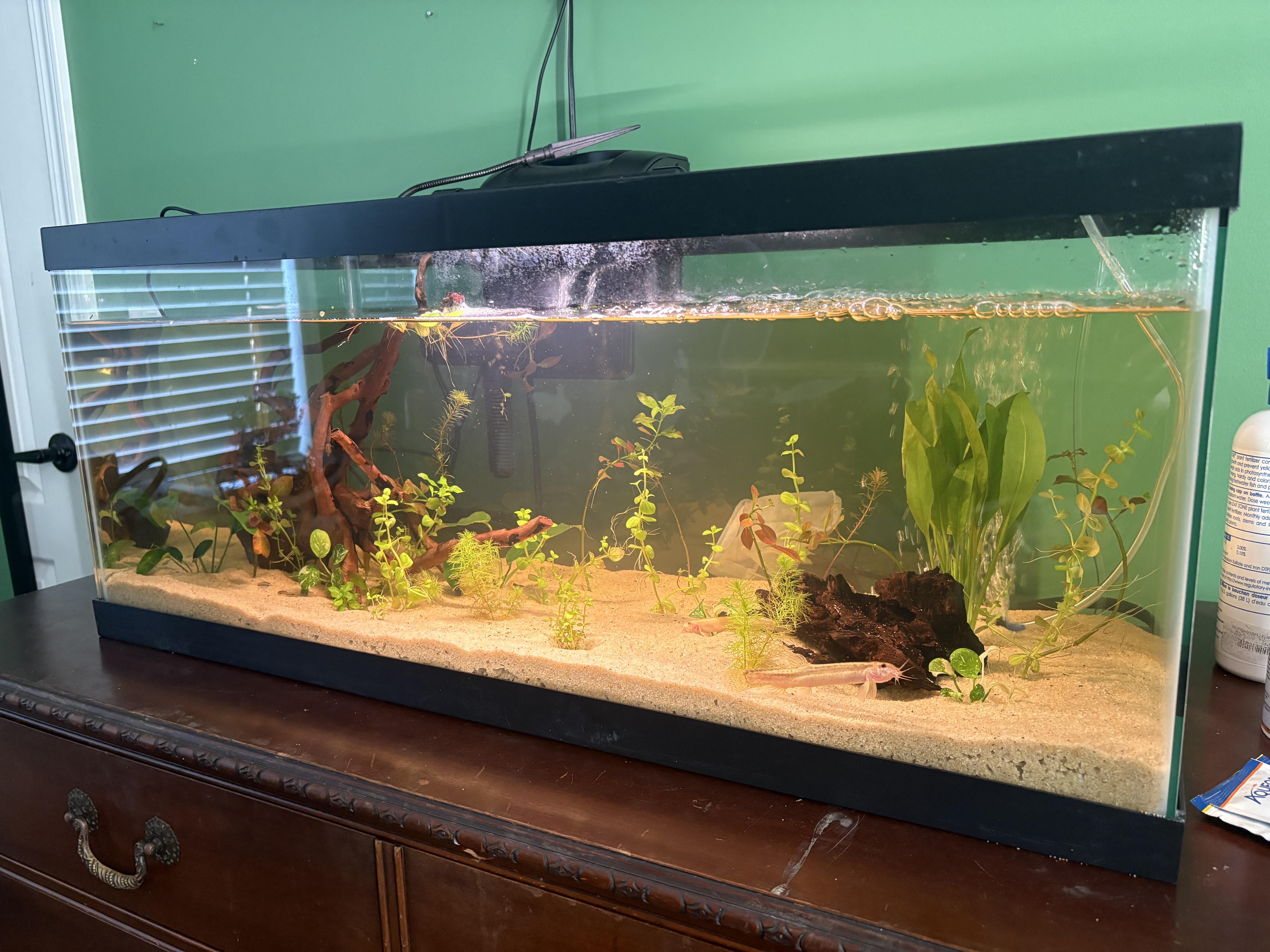 I’ve got a 20 gal tank with 2 small dojo loaches 3 otos and a long finned pleco. I’d like to add some kind of schooling fish but I don’t want an overstocked tank. I’m interested in adding either lampeye killifish or threadfin rainbow fish. I’ve got more plants on the way and patiently waiting for the ones I have to grow lol so it will be more planted eventually.