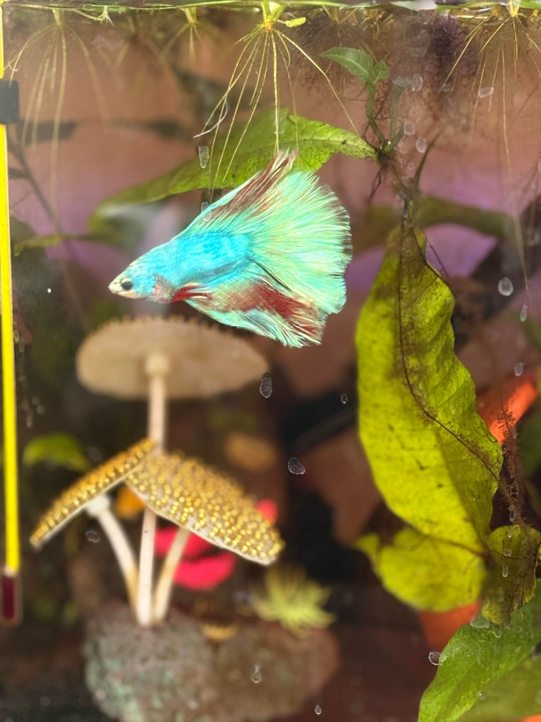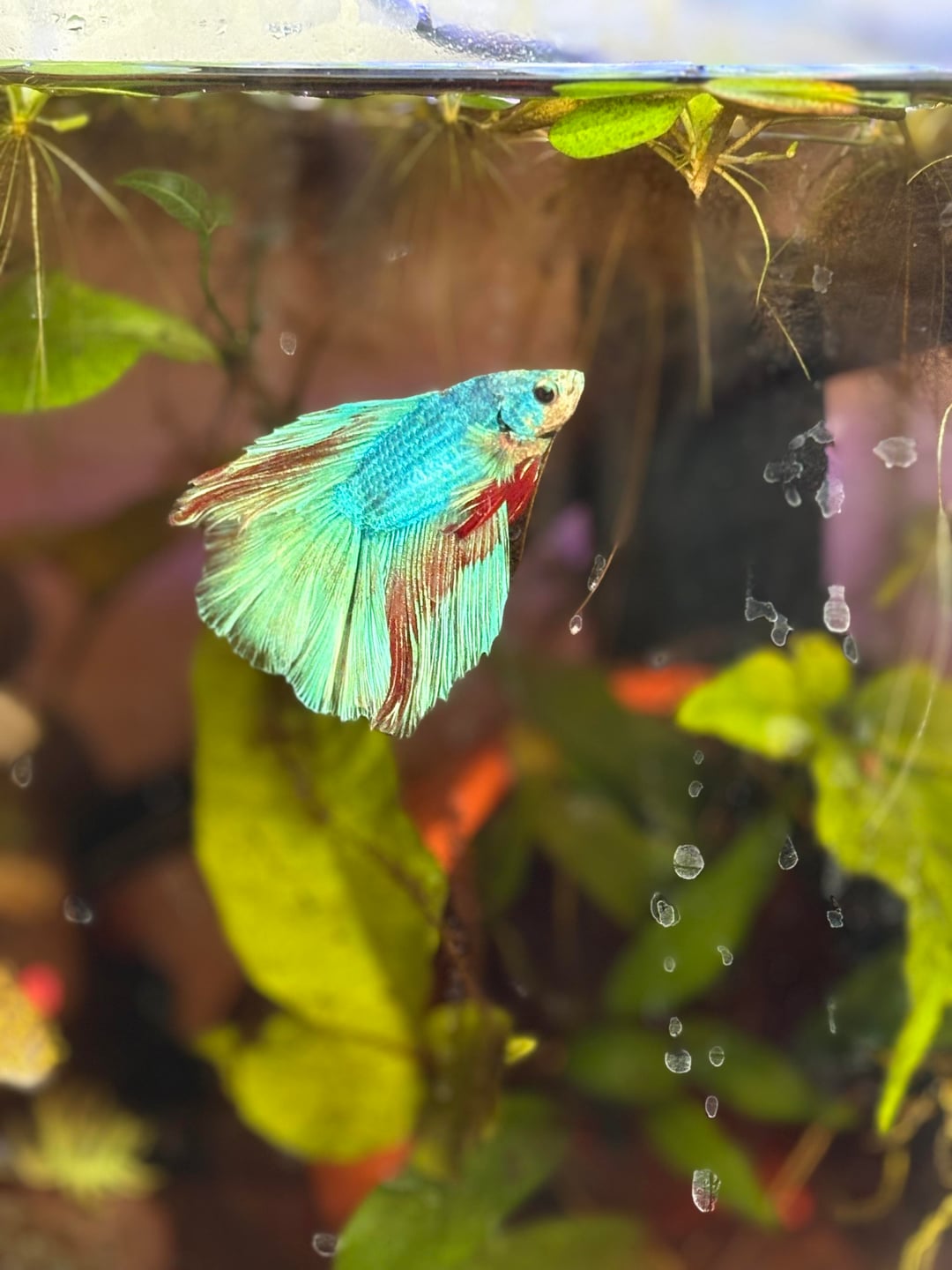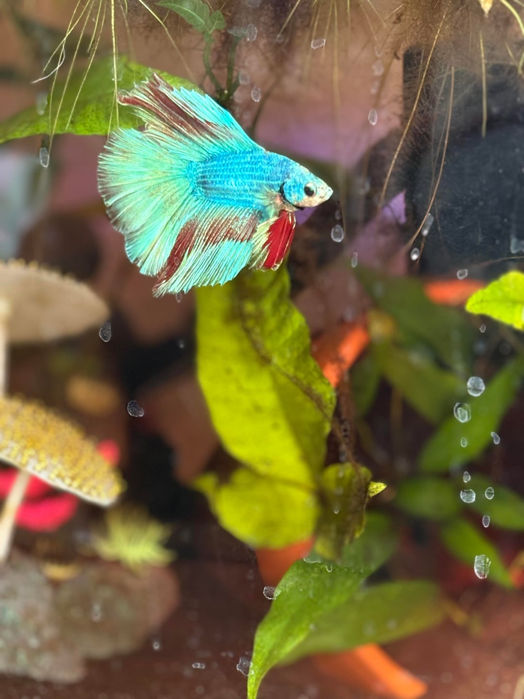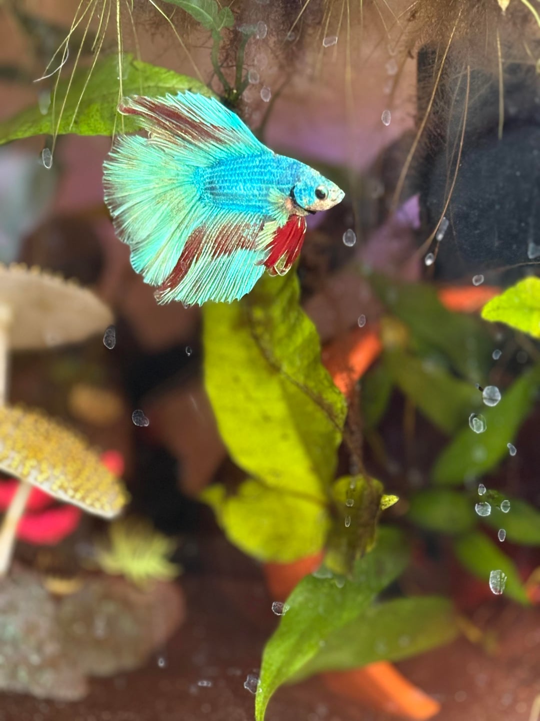 Hes a very happy guy outside of his colors, lots of plants in the tank and he eats his beloved betta bites and flakes no problem He is actually watching me type out this post currently LOL