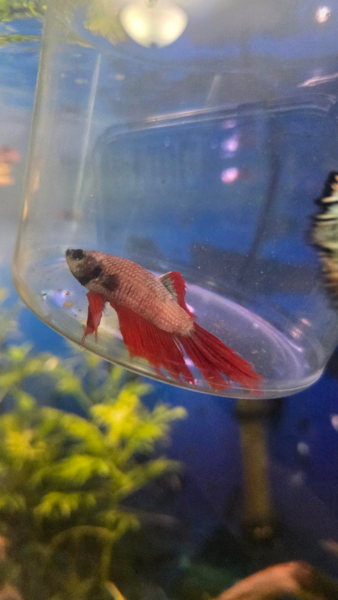 My dad got himself two bettas, one for his 10 gallon and one for a vase in the cold windowsill. He let me take the one in the vase with very little convincing, and it was perfect timing because I was just planning to get rid of the fish in my 20 gallon. Orcas much much happier a month later.