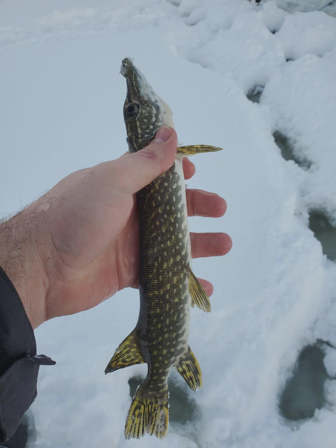 Even the small ones make for a good laugh-love it! Do you often get pike this size on tip‑ups?