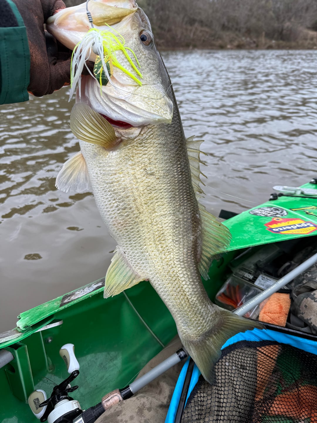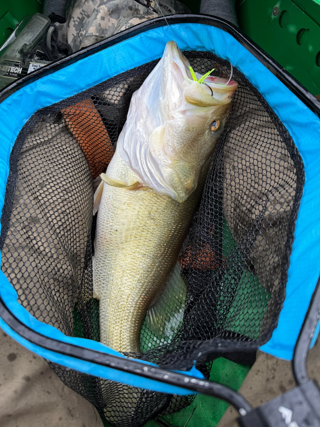 Canceled work in a state of emergency on account of the weather so naturally I went fishing. New PB and finally passing the 5lb milestone. Caught on 1/2 oz Z-man EVO chatter-bait white/chartreuse no trailer. 🐟
