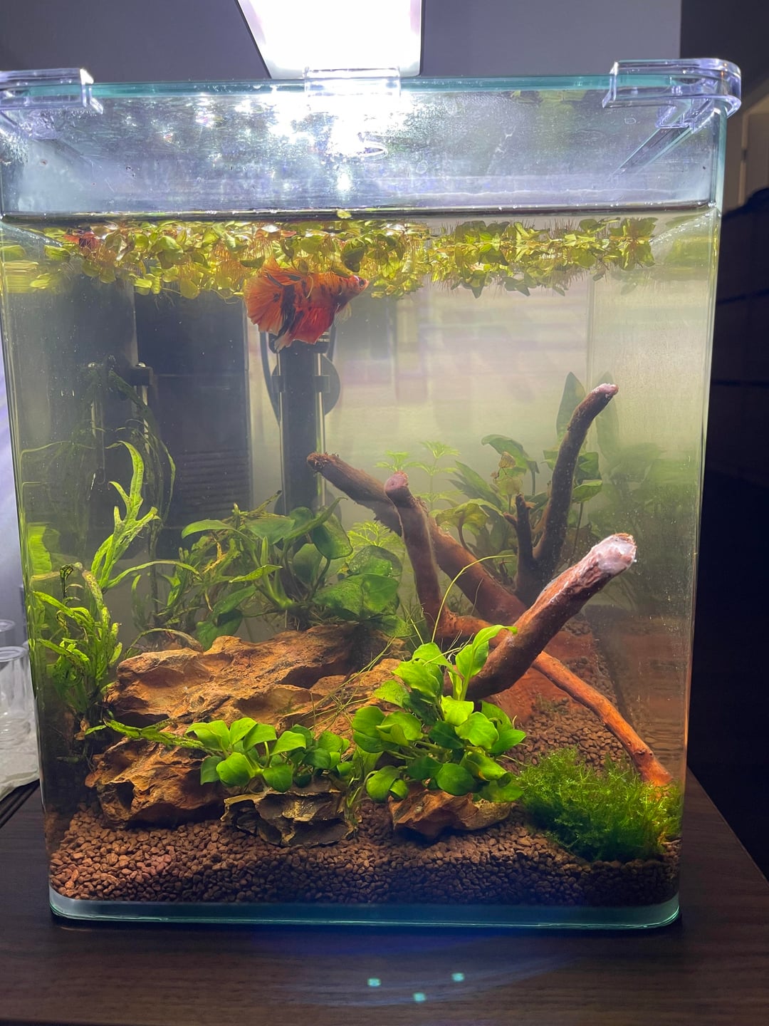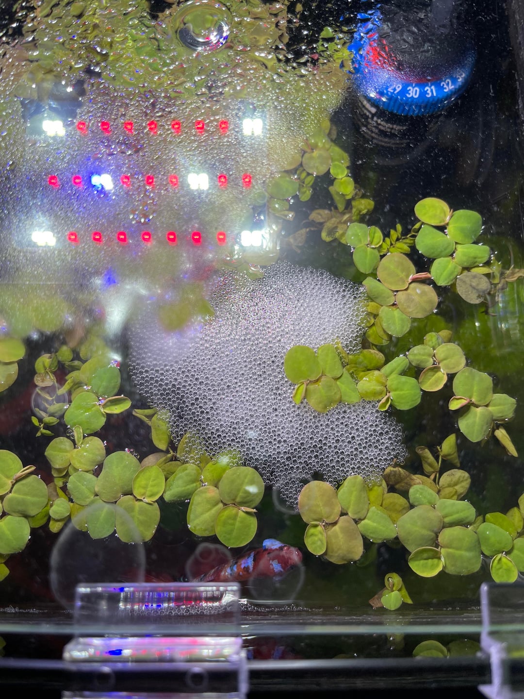 We have him for 2 days and he built his first bubble nest. So happy! I think he likes his new home. He lives with his homemate, a red Neritina snail.
