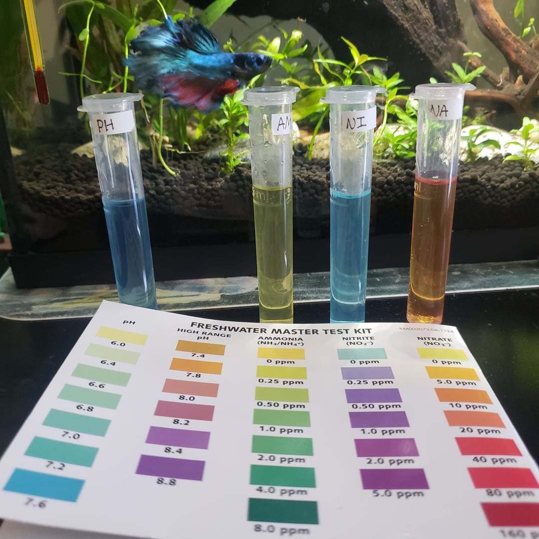 I was given this betta and he lived a small bowl for a while (I'm a minor and my mom insisted a bowl was fineš) until I saved up and got him a 5 gal tank !! I got Topfin's 5 gal starter kit that came with a filter (Topfin's hang on back filer), thermometer and a lid with a white led light, which I think is too bright but Idk. I also got him a heater (also from topfin, it's set at 78°, I'm gonna get a better, adjustable heater eventually !) I think I did a pretty decent job setting up his tank but I didnt actually cycle the tank properly before putting him in :(( I tried to do a fish in cycle and I think the parameters look pretty good (they're shown below) !! Pls tell me what I can do to improve them. I also wanted to know about what filter media I should use bc rn I m using the filter cartridge that came with the filter and i heard those arent great but I dont rlly know what to replace it with, also I'm a little worried about his fins, I think he has some minor finrot so I'd love to know how to help him with that ! Sorry this is long but advice is much appreciated !!!