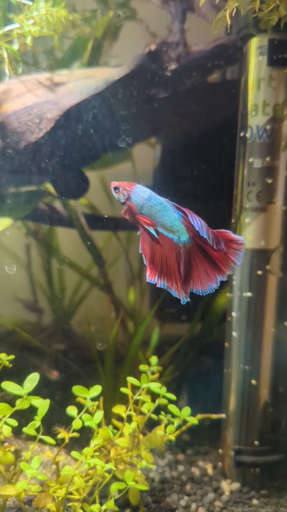 I watched him in the pet store for a while and noticed that he was watching me. He reminded me of my old betta Buddy (RIP). After Buddy died, I had left the tank without a Betta for months because I didn't want anyone who wasn't similar to him. I also didn't want a new betta coming in and bothering the small tetras.