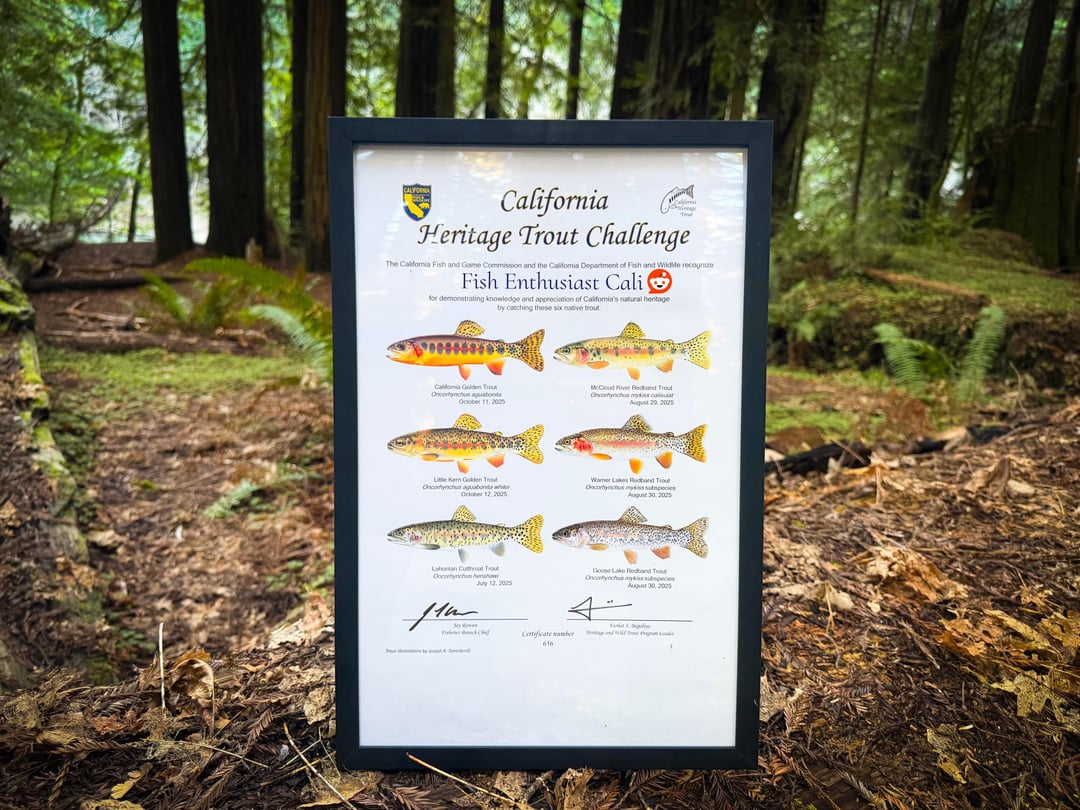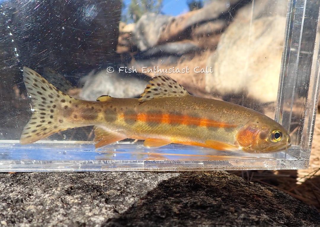 One of my biggest accomplishments so far, the California heritage trout challenge. Fort the first trout, I went up to the Tahoe area to catch the Lahontan cutthrot trout. I would say that this was the hardest one of the bunch since most of its range has been invaded by other introduced trout, some areas still hold a decent population of these fish. After this, I went up north to catch mccloud redband, goose lake redband, and warner lakes redband. The scenery for all three of these was absolutely unbeatable, with beautiful veiws of Mt.Shasta on the mccloud, and views where you could see miles and milles from atop mountains near goose lake. Out of these three, the warner lakes redband trout was for sure the most difficult, and probably the most difficult of this challenge. The creek I went to was no more than a foot wide in most places with one or two pools that may hold trout, I got lucky and caught one after about 3-4 hours of clambering through bushes and finally finding a little hole that held a couple trout. For the last two, I went high in the southern sierras at about 8-10 thousand feet which is the highest ive ever been outside of an airplane. The drives here were long and foggy for the most part, with some fantastic sight seeing once you broke through it. Both the California golden and the little kern golden were in some pretty standard high mountain tributaries but what I noticed about the California golden trout is that you had to be very stealthy to get a bite as they spooked easily. And that concludes my experience with this challenge! I had to censor my real name for internet reasons and I also gate kept the spots since some of these populations are pretty sensitive unfortunately but I found the challenge more fun doing my own research anyway. Also sorry for all the watermarks but people love to steal photos from reddit