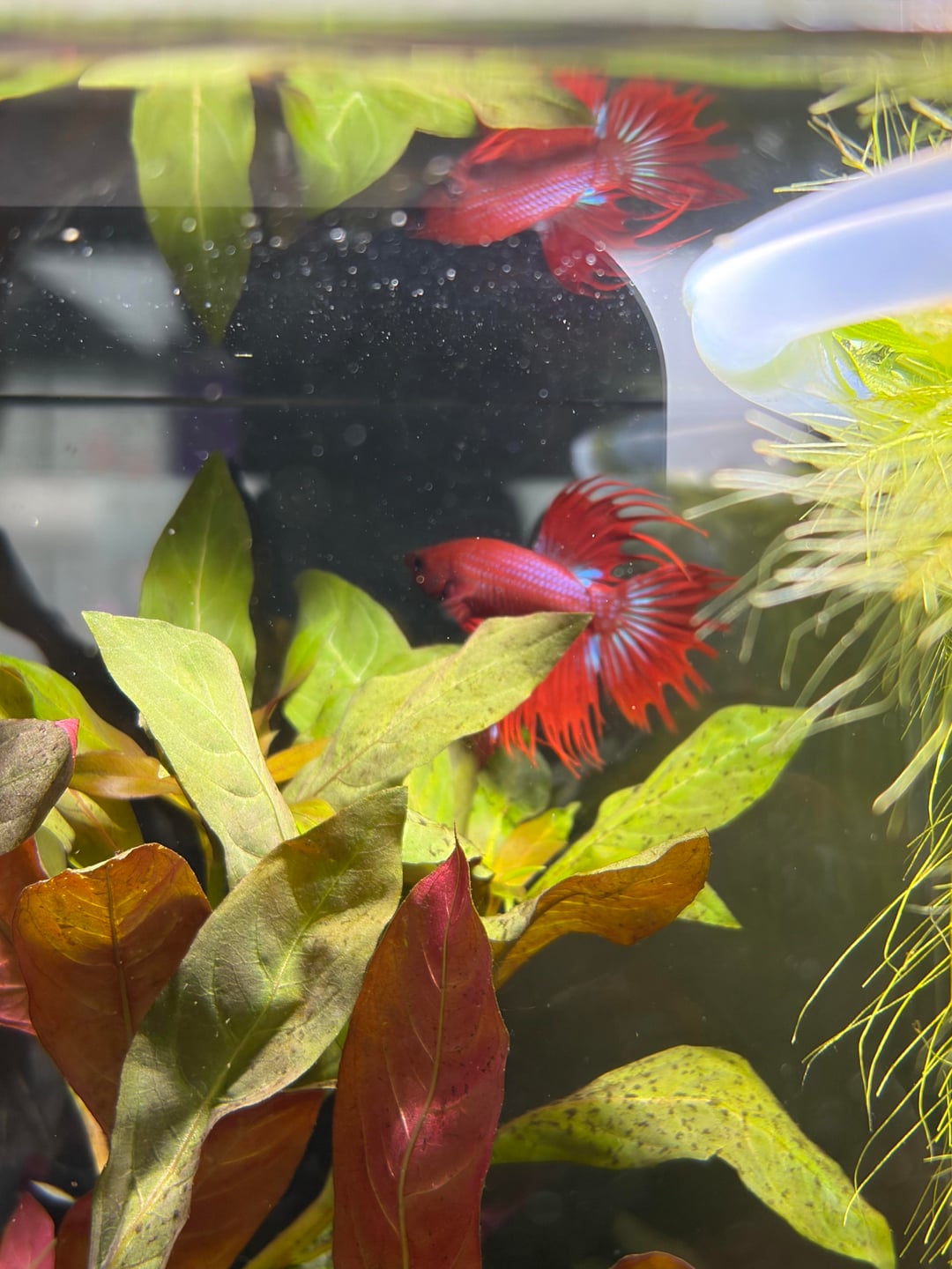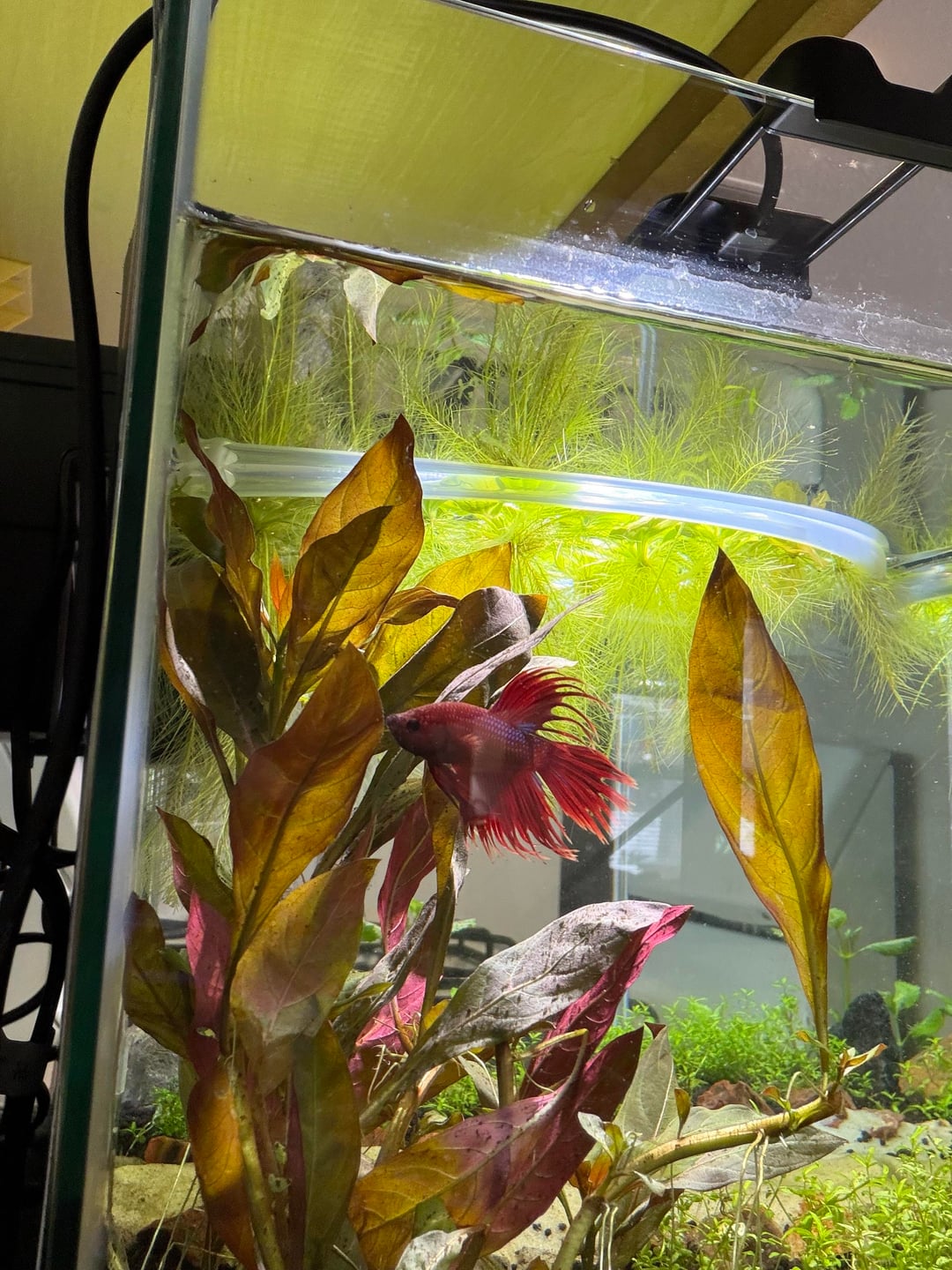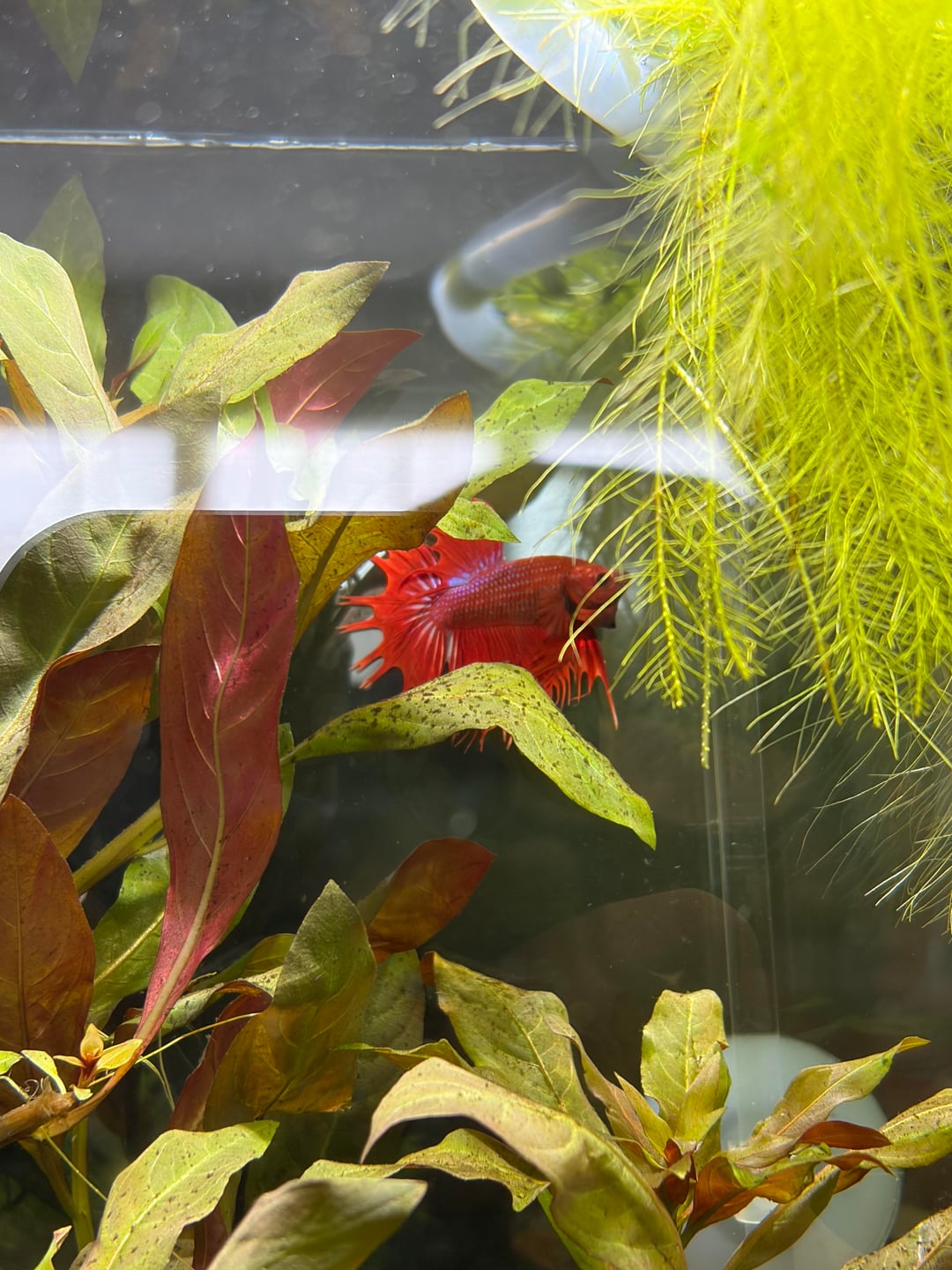 Zuko has been in the tank for 20 min, and he is letting every reflection know that this is his corner. Little does he know, he has another 9 gallons that is also his to explore and do what he wants with! Welcome home Zuko.