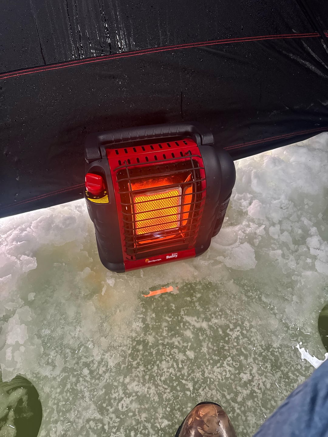 I didn’t know this until this year, but it makes sense in retrospect – burning propane produces a ton of water. That water vapor condenses on the cold walls of your shanty.