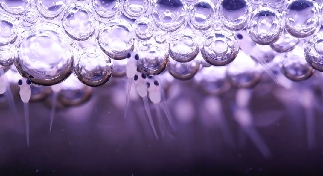 After 2-3 days, the yolk is fully absorbed and they finally swim horizontally. From then on, the Dad is removed from the fry to recover from his gruelling ordeal.