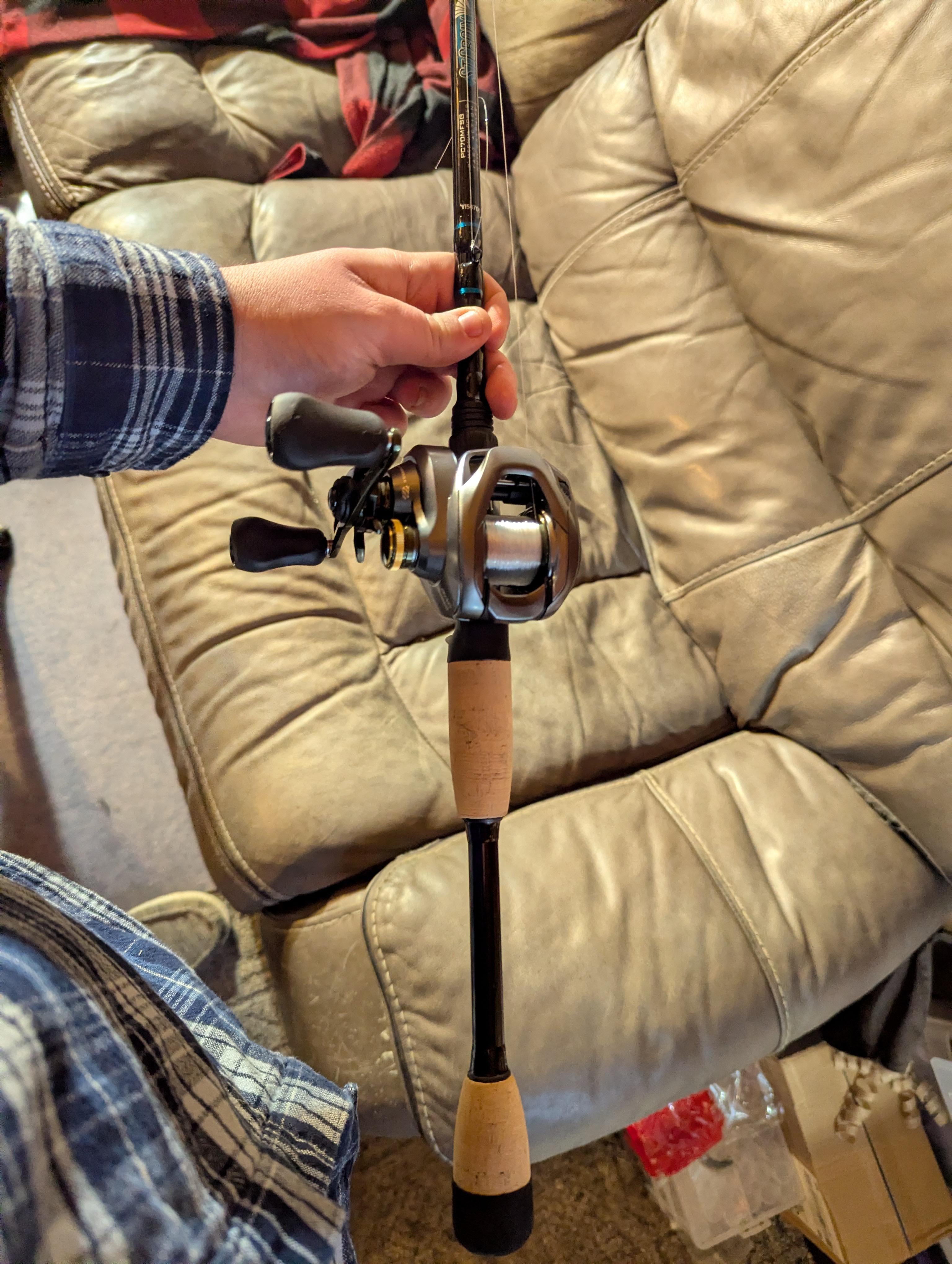 I've mainly been using my dad and uncles old fishing combos. mainly ugly stick rods, and various reels. this is my first new rod and baitcaster! St. Croix premiere series rod, 7 ft medium fast action and a Shimano curado 151dc.