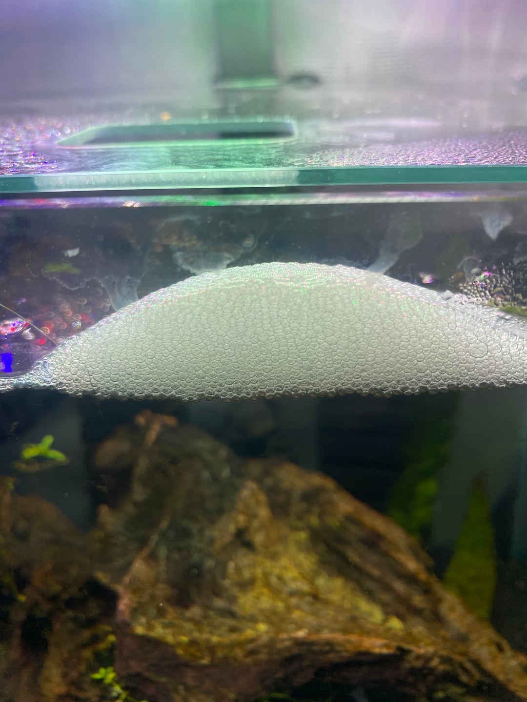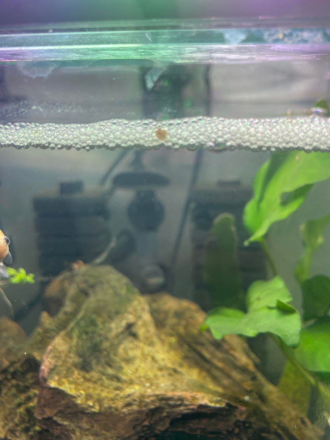 I feed my bettas the little fluval bug bites pellets and my make betta is in his own tank, usually far away from my females. However recently he’s had female company as I noticed one of my girls has been having a bit of weight gain and some odd looking poops. (Story for another time) so she’s in my hospital tank which is right next to the males. So he built this huge bubble nest and spent most of his time in the corner where his female neighbor was. Recently I was adding plants and cleaning the glass so I accidentally destroyed it. He built a new one last night and in the morning I fed them all as usual and I later came back to see a piece of food in his nest and all day he’s been guarding it when usually he likes to hide in his cave.