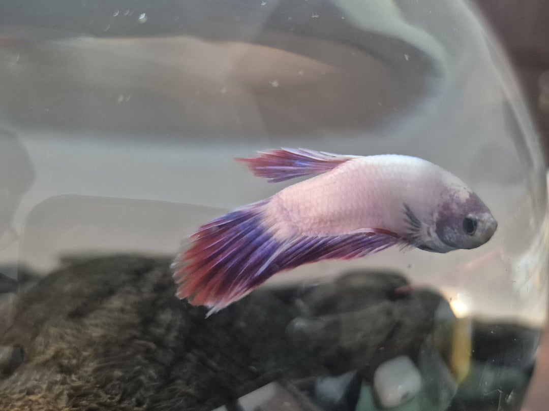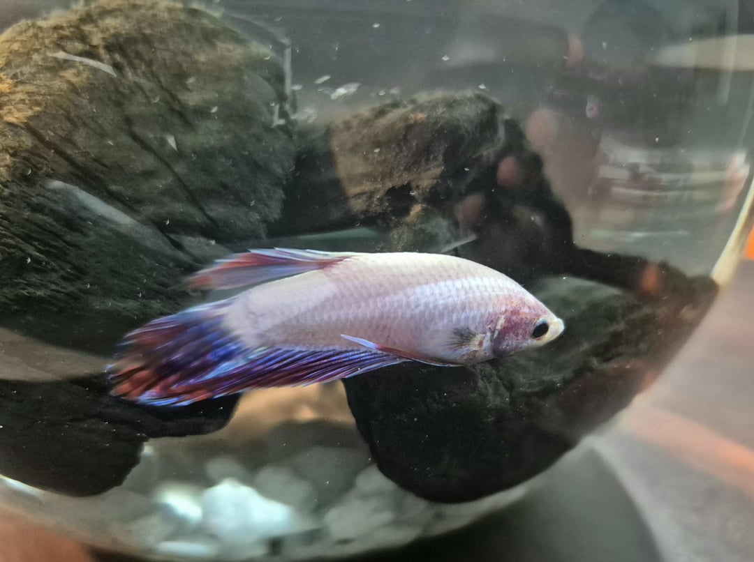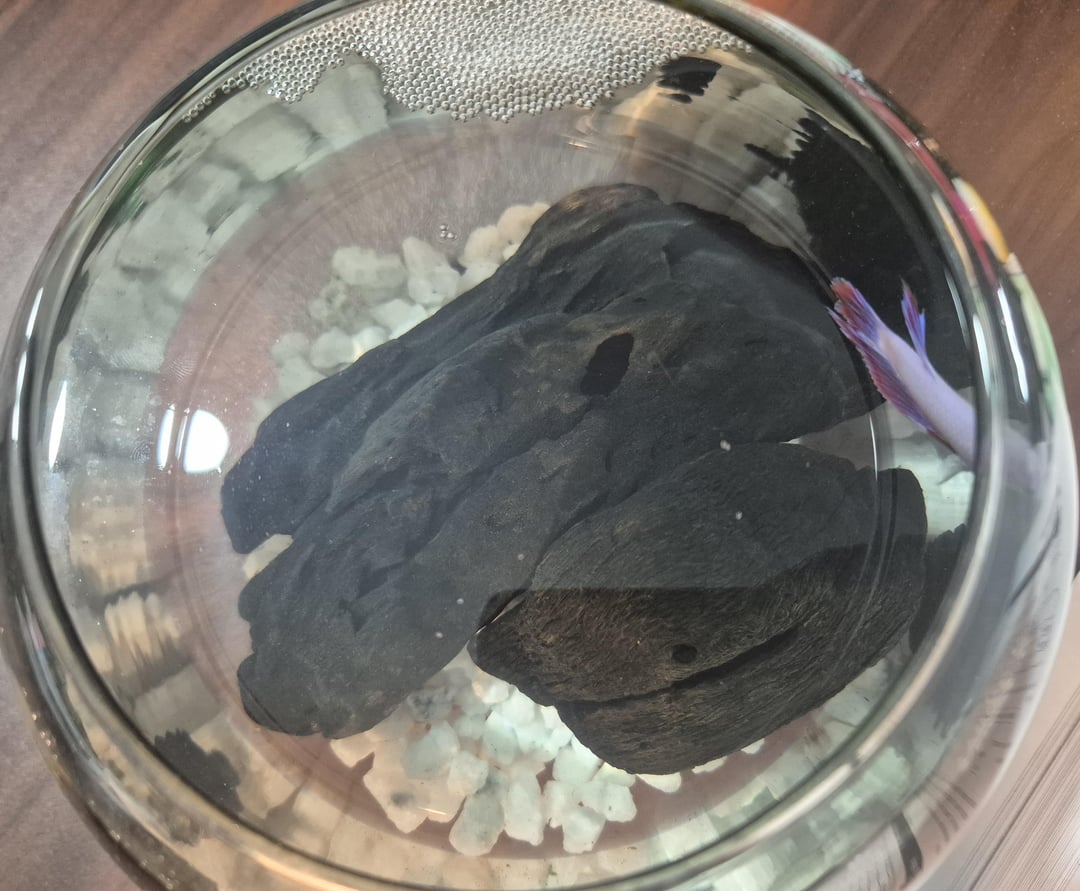 Soo 4 days back, I went to the fish store to get some guppies for my bigger tank and i found this guy in a small jar, he was pretty weak and was laying down on the bottom, the shop owner gave me this fish for free when I took a lot of guppies, I dropped him with my guppies and and found out they both are not good partners after asking chatgpt, so I had to buy a medium sized bowl, stones and some wood for him.