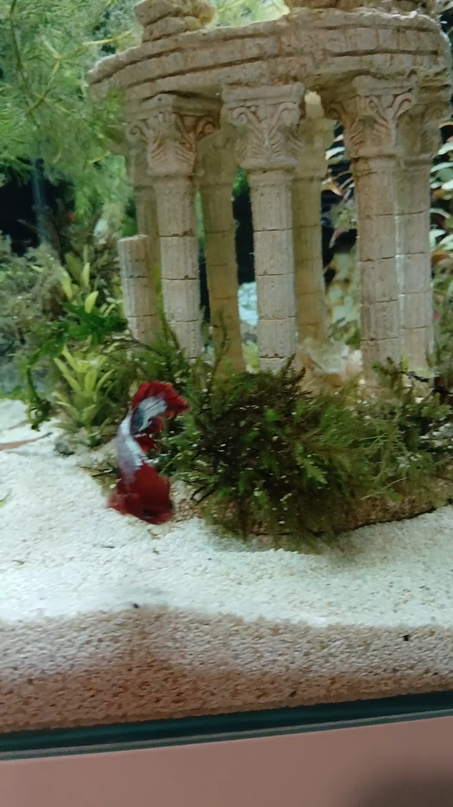 The newest member of the family. Had him 1 week he loves bloodworms and flaring at his own reflection 😆 had to put a divider between him and my goldfish tank he was ready to take my orange goldfish on who is 6 times his size bless him 😆 he hates pink ramshroms but purple mystery snail and MTS are ok. Hes such a cool wee guy 🥰