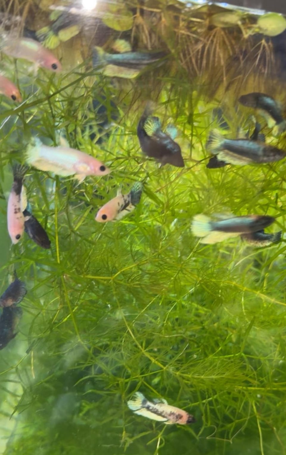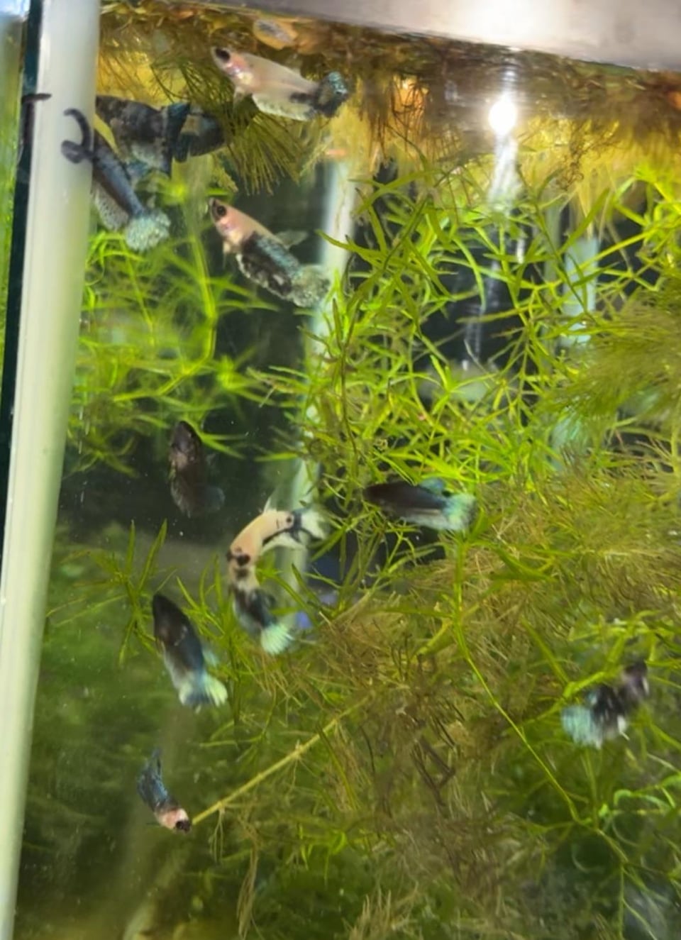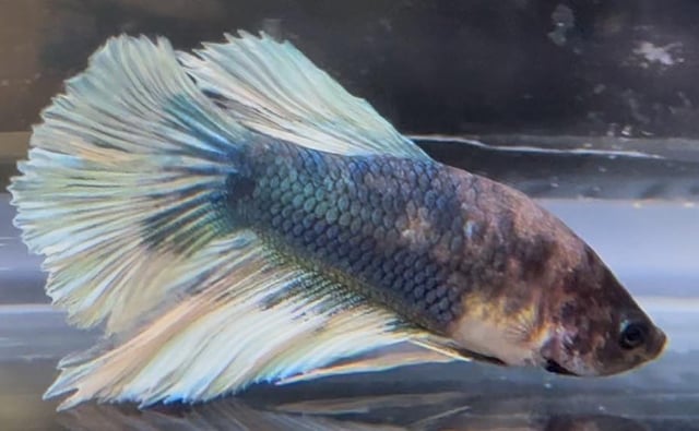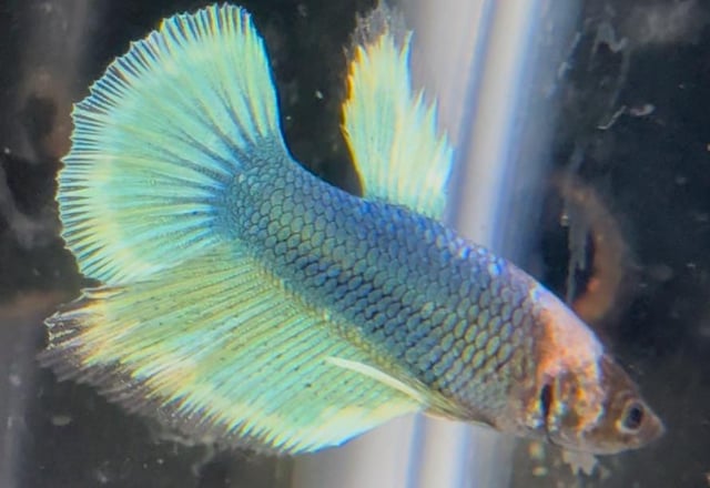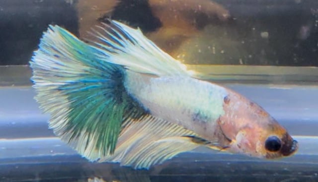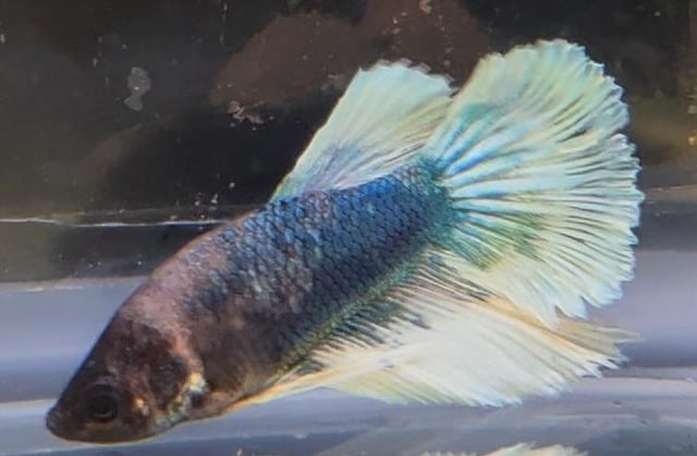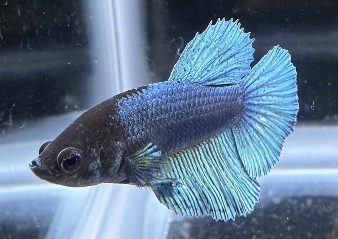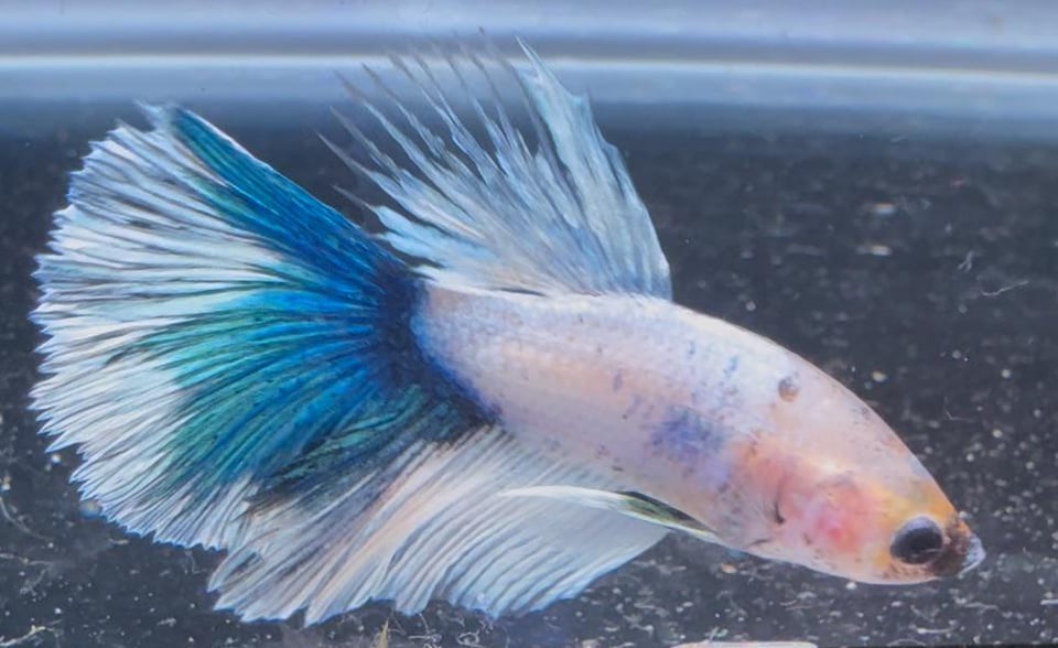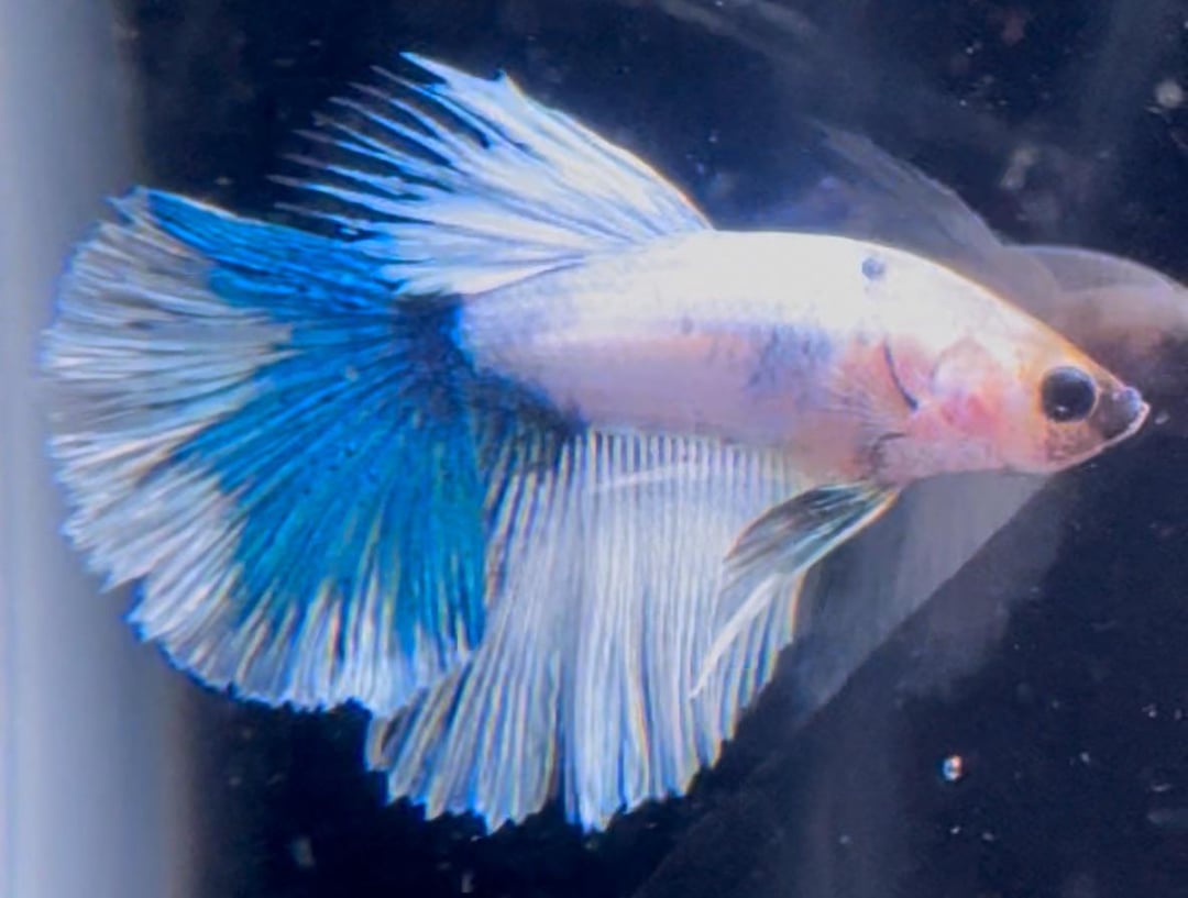 Hello, I have around 60 blue white (and black) copper Halfmoon and halfmoon plakat bettas that I have bred and raised over the last 6 months. The father was a halfmoon plakat all white platinum male and the mother was a rare black copper halfmoon from Thailand. The bettas I bred feature shiny luminescent colors under light – almost like a metallic rainbow – which I feel makes them a bit more expensive than others?