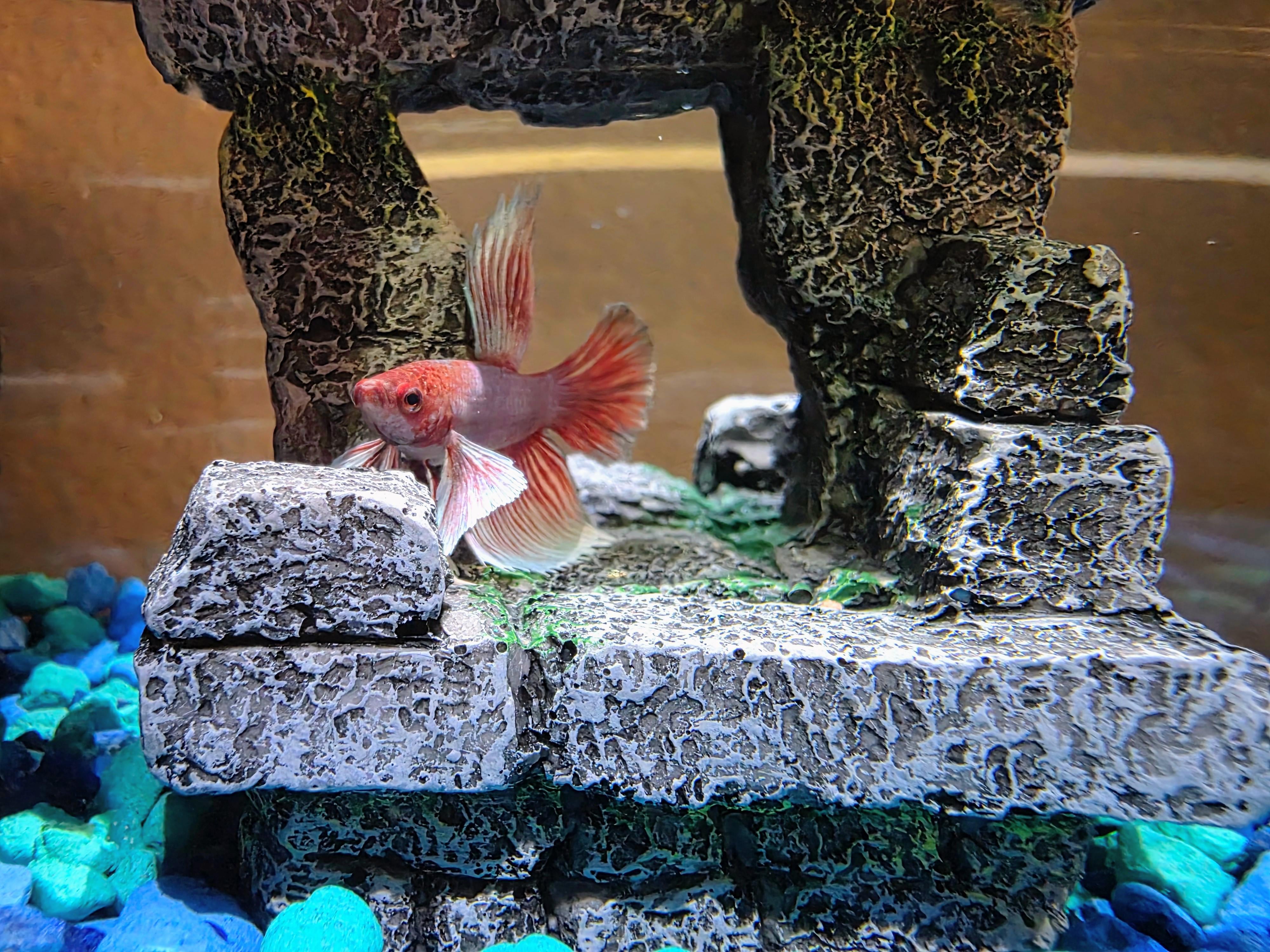Our previous betta, Bocephus, passed away a few weeks ago. He lived for almost three years. We decided to add a new betta to our home a few days ago. His name is Merle. He's quite young; he was born in December. That's all – I just wanted to show you all our beautiful little guy 🙂