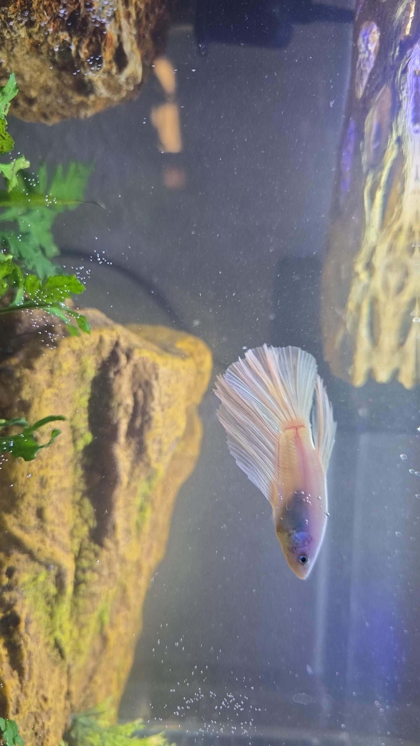 Did you add beneficial bacteria? I see your tank is still cycling given those bubbles on the side. With one betta the bioload won’t be too much, so just keep testing the water to make sure it’s okay for him.