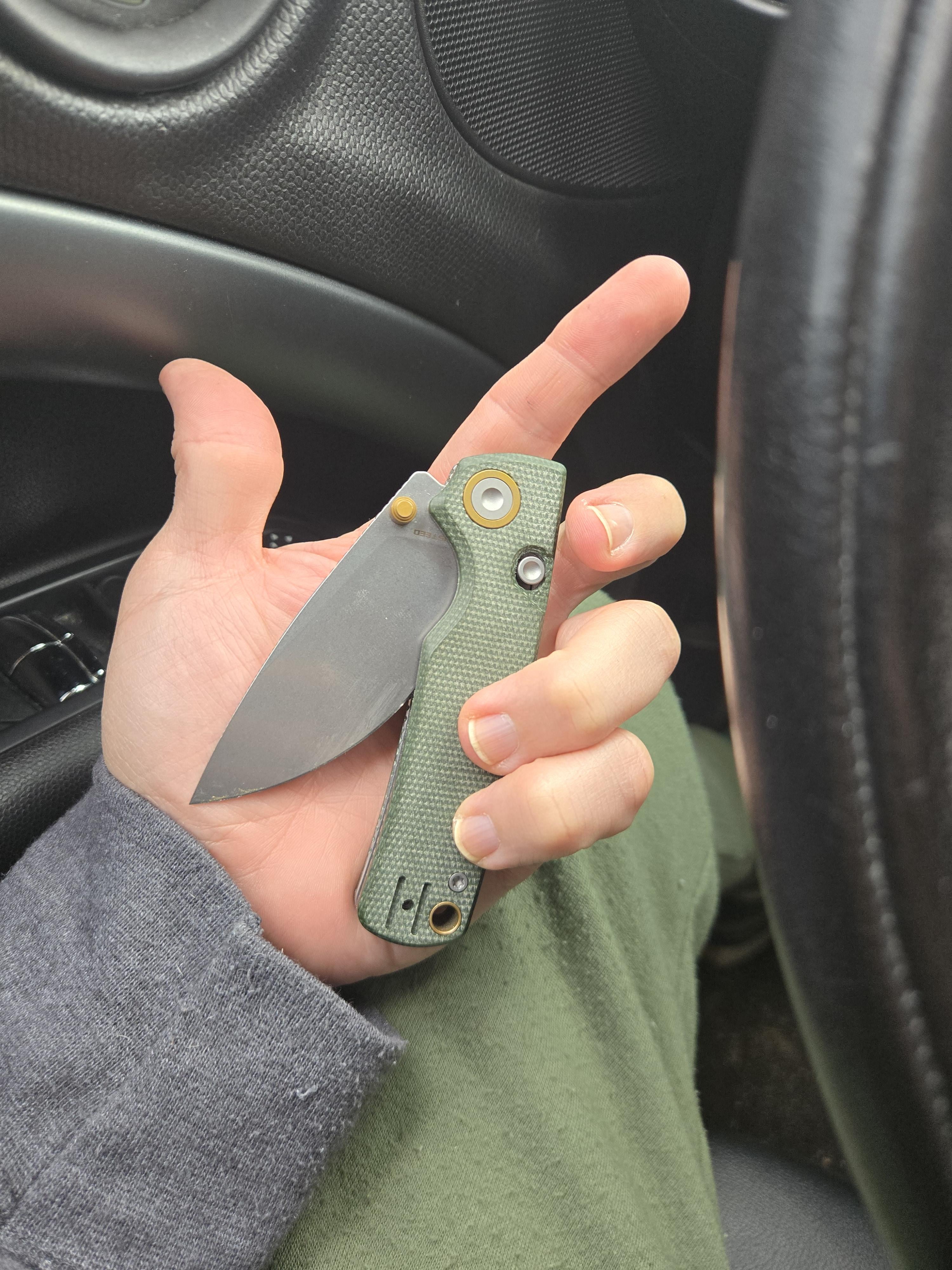 1. $10 Ozark Trail surprisingly good, D2 steel, bearing actuated, will not hurt if I drop it in the drink.