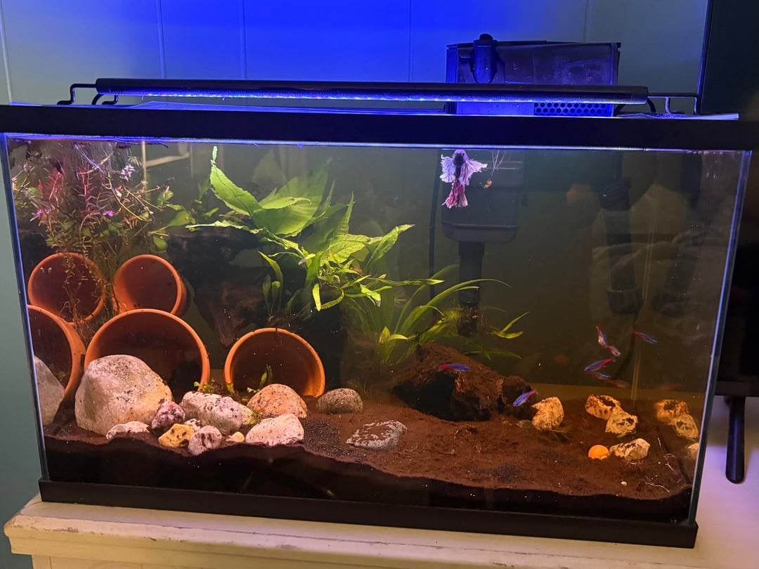 Has anyone had fish just disappear without a trace? I have dug through this tank a million times and removed 90% of the plants and there has never been a remanent of the 2 that just disappeared. Also somehow missing a snail. The 2nd picture is of my lid, there isn’t a single gap anywhere. I count everyone in the tank very often so I just don’t understand how? Please let me know if this has happened to anyone else?