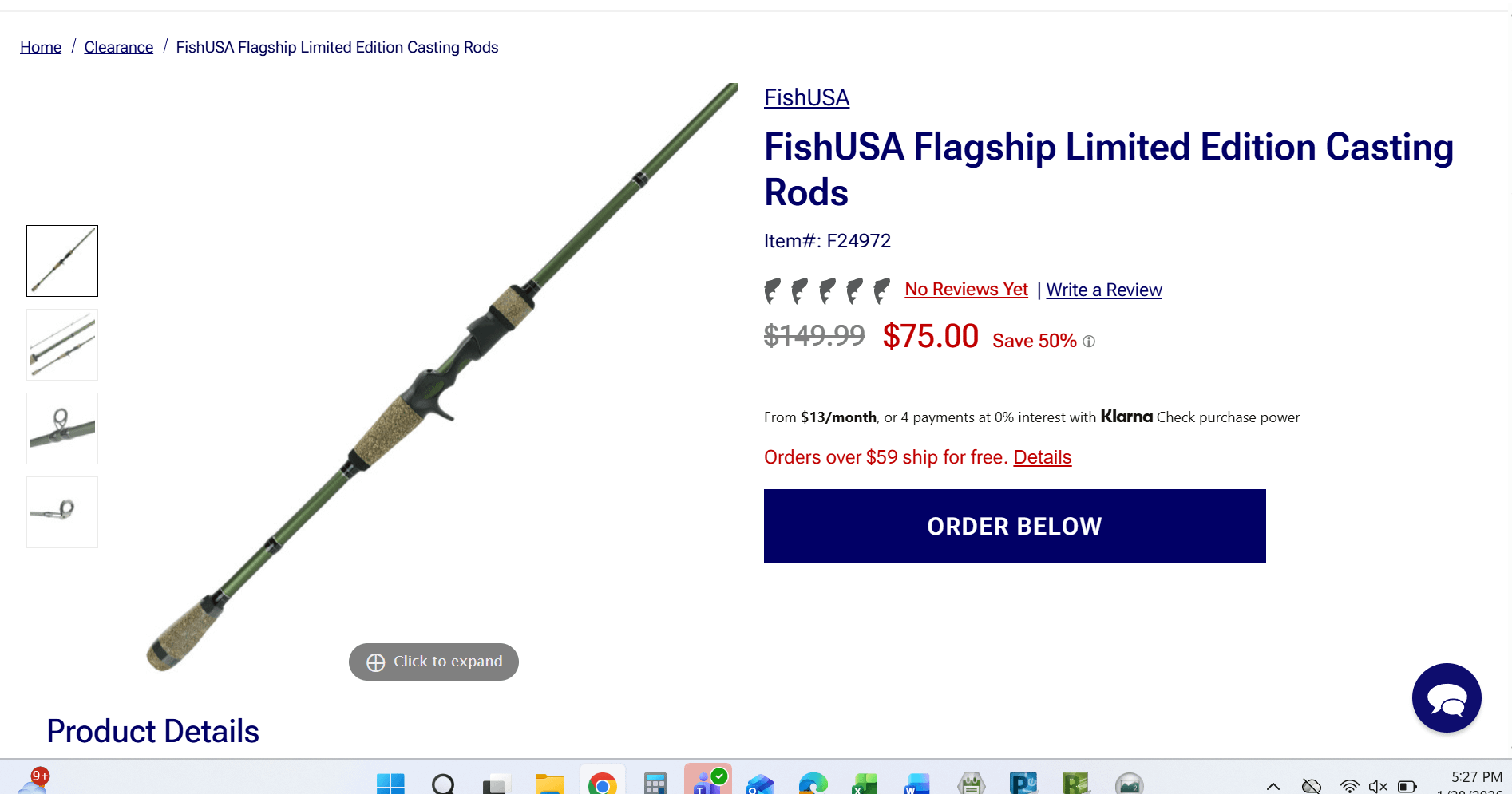 I really like ordering from FishUSA and their customer service is excellent. That said, I looked at this rod in the past and it has an attractive look to it. The one thing that got me was “sleek graphite look”. It doesn’t get into what the actual material is. They have some more expensive models that outline the grade of graphite used
