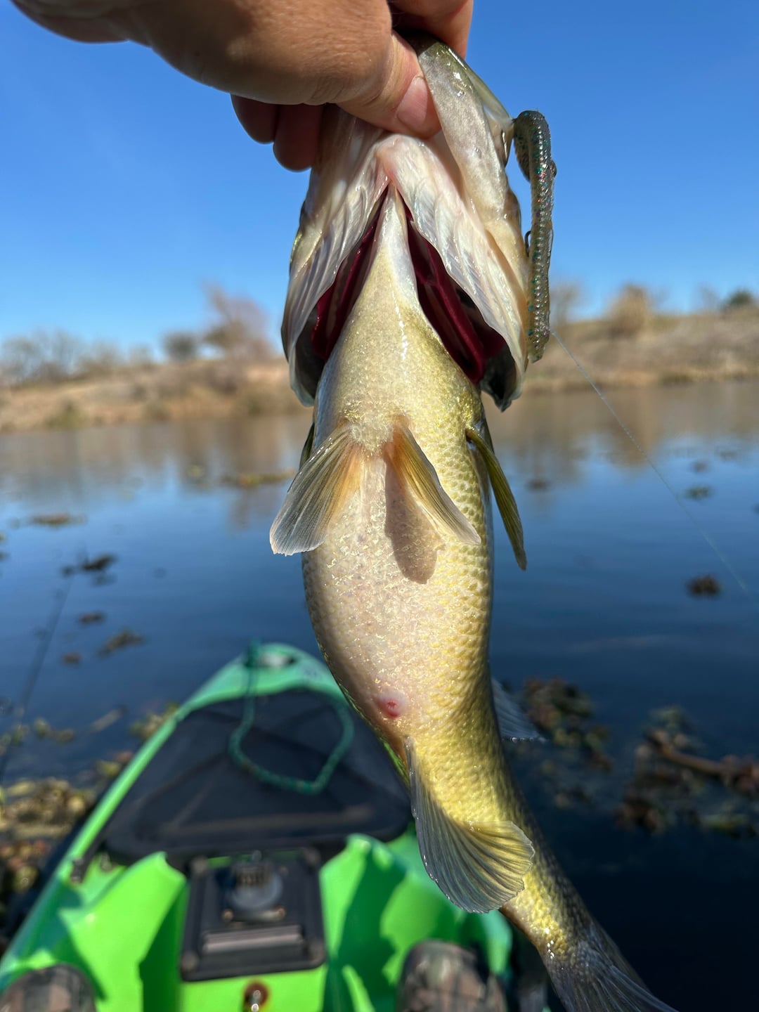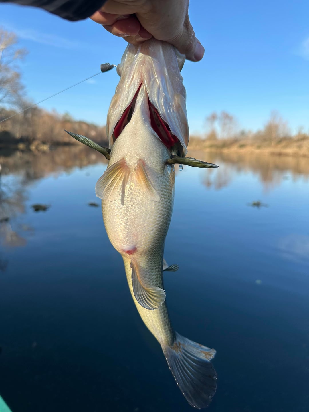 Last week’s major cold front has finally got my local river bass into a feeding frenzy mood. They’ve been packing on the calories and couldn’t resist a simple Texas rig worm today even though the water is still cold and they look pretty full.