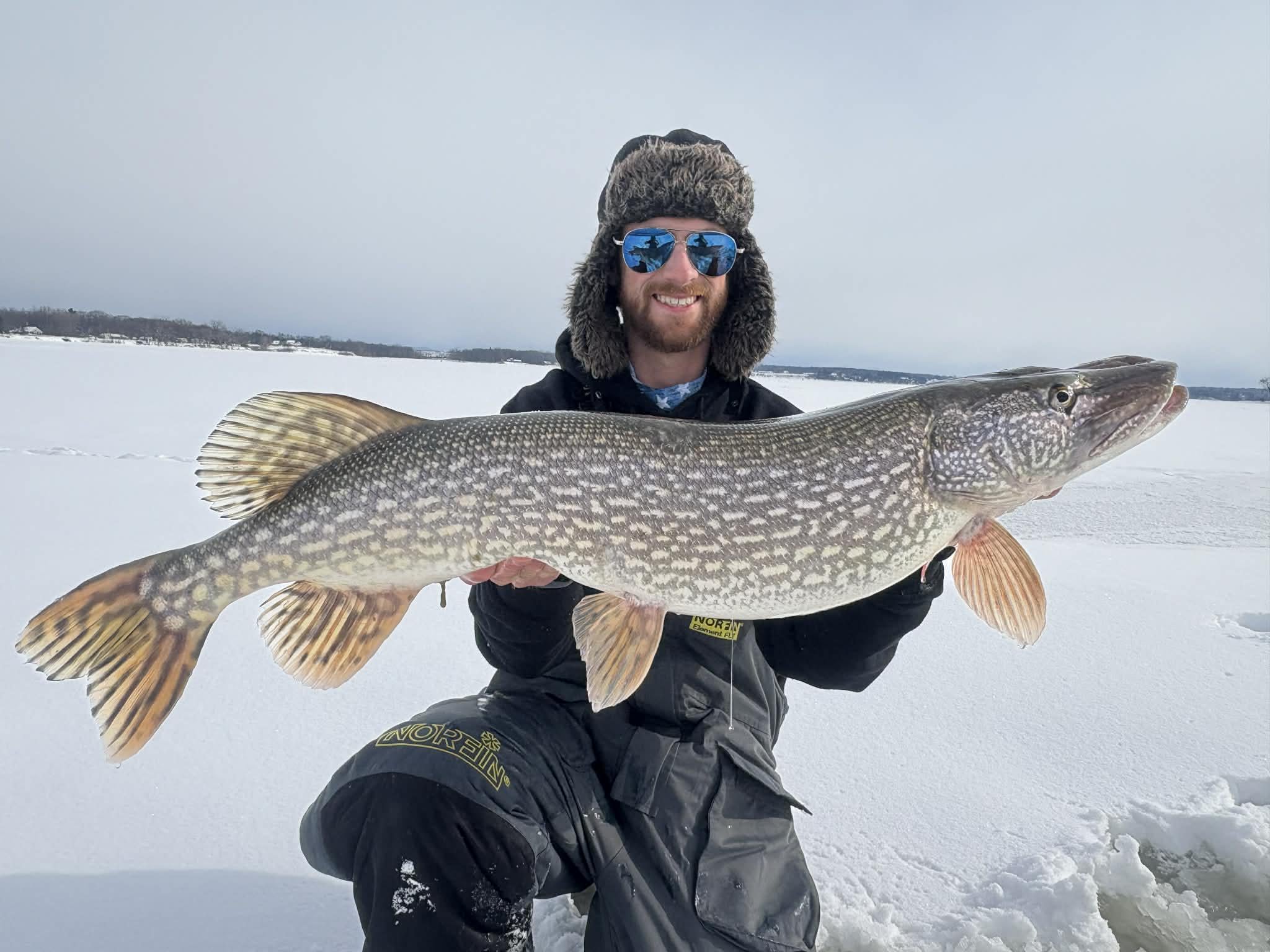 I got to help my friend Tom land this absolute UNIT of a pike today. Went on multiple runs, gave us all it had but we managed to get it up the hole. Gave it a good long time to get its strength back and it kicked off strong. Caught on a jaw jacker and a big sucker for bait.