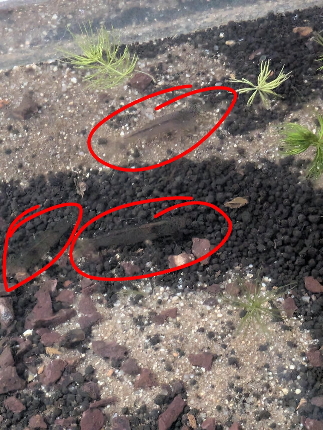 It looks like there are some bottom feeders and/worm type creatures ? We counted maybe 6 different things, but more could be hiding.