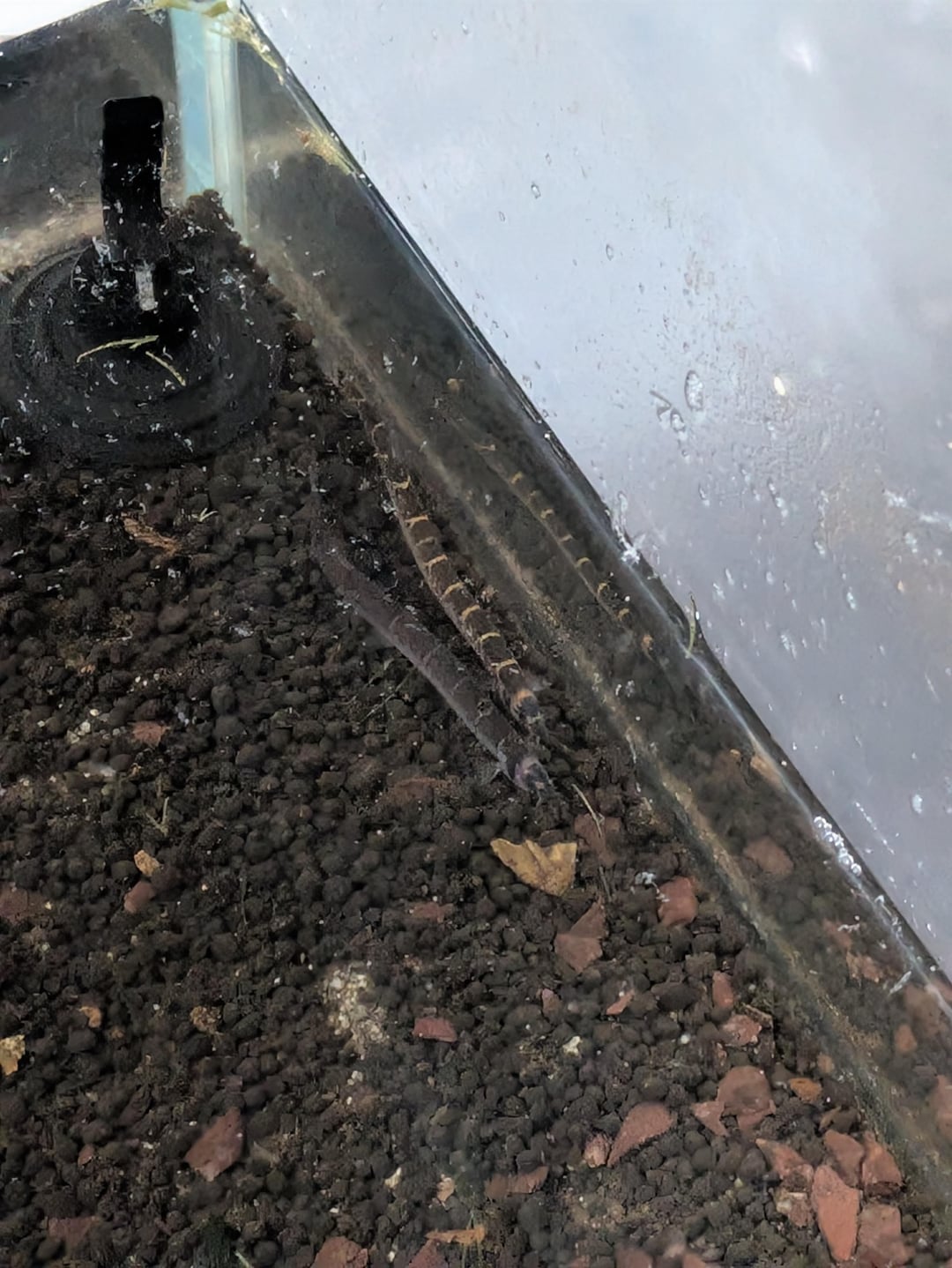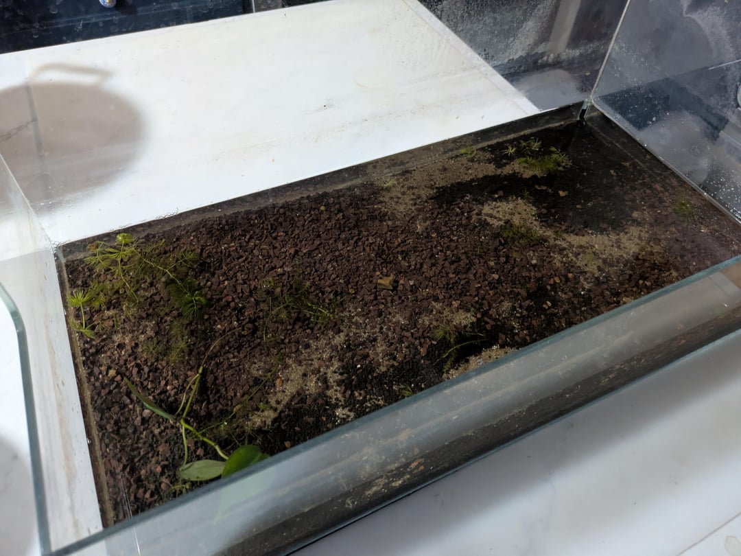 I don't know anything about aquariums, other than the fact that this is provably not healthy for them to live in. It's about 3 inches of water, if that.