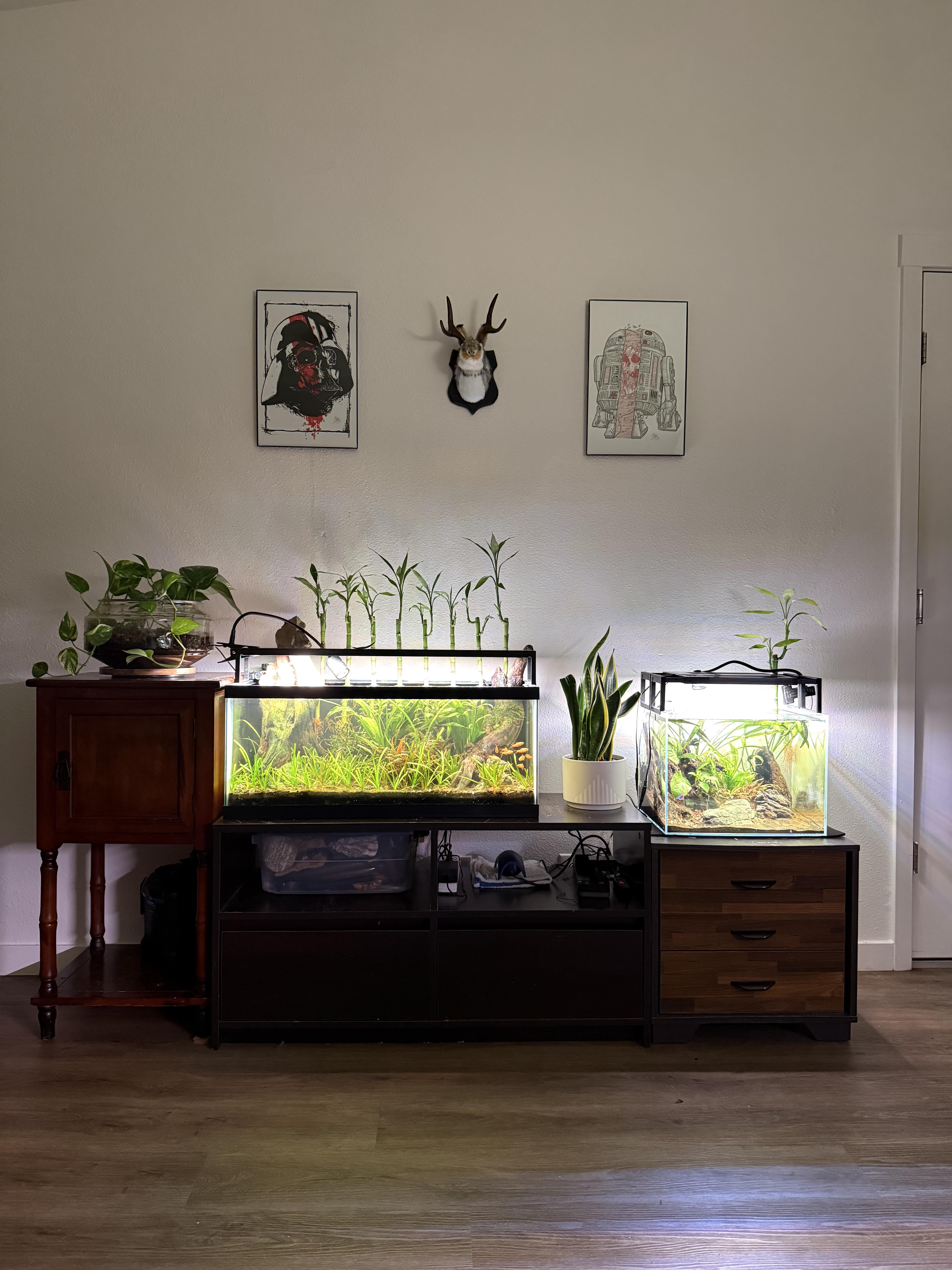 What are the plants coming out of your tank and how did u attach them? Everything looks really nice and neat