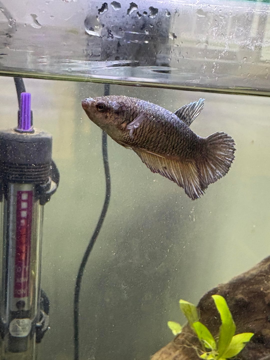 So I work a pet shop and it was about 5:15 just about to close and a customer rings up and says they found a fish in a old juice container with a free sign sitting on the side of the road. (this is New Zealand so free stuff on the road is super common) And they ask if they can bring it in and we can take care of it. Obviously we say yes and when they get here it turns out to be a beautiful placket betta. I had an empty cycled 25 L tank sitting with nothing in it so it was the perfect for him. he’s in surprisingly good condition and super happy in his new home.