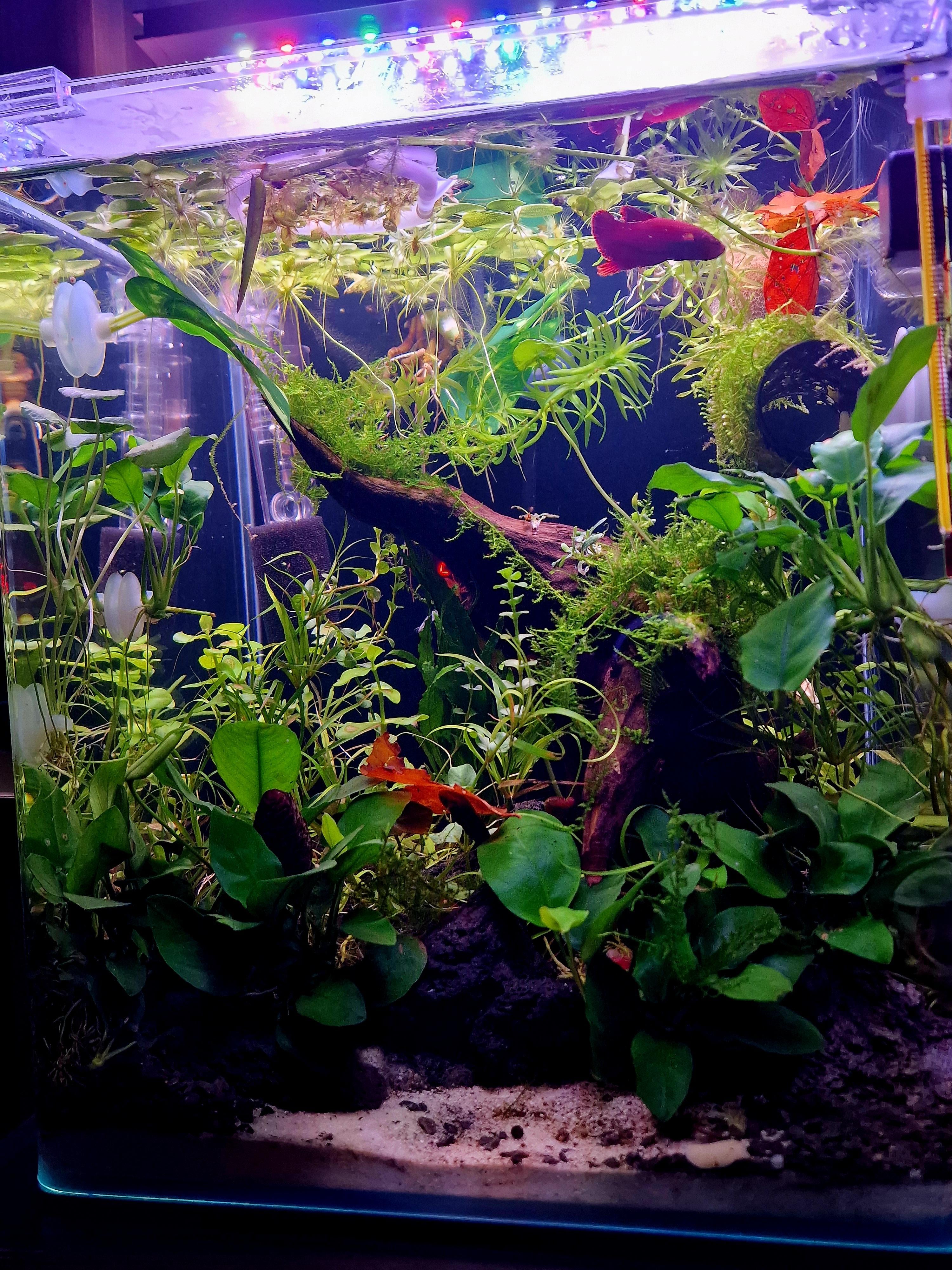 My new tank so far ☺️ I’ve got a red samurai betta male