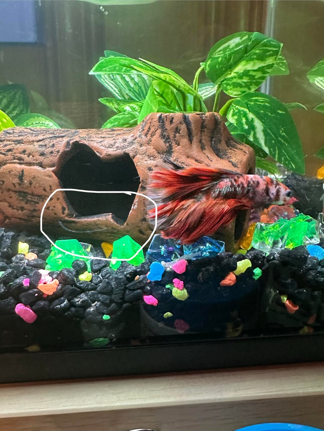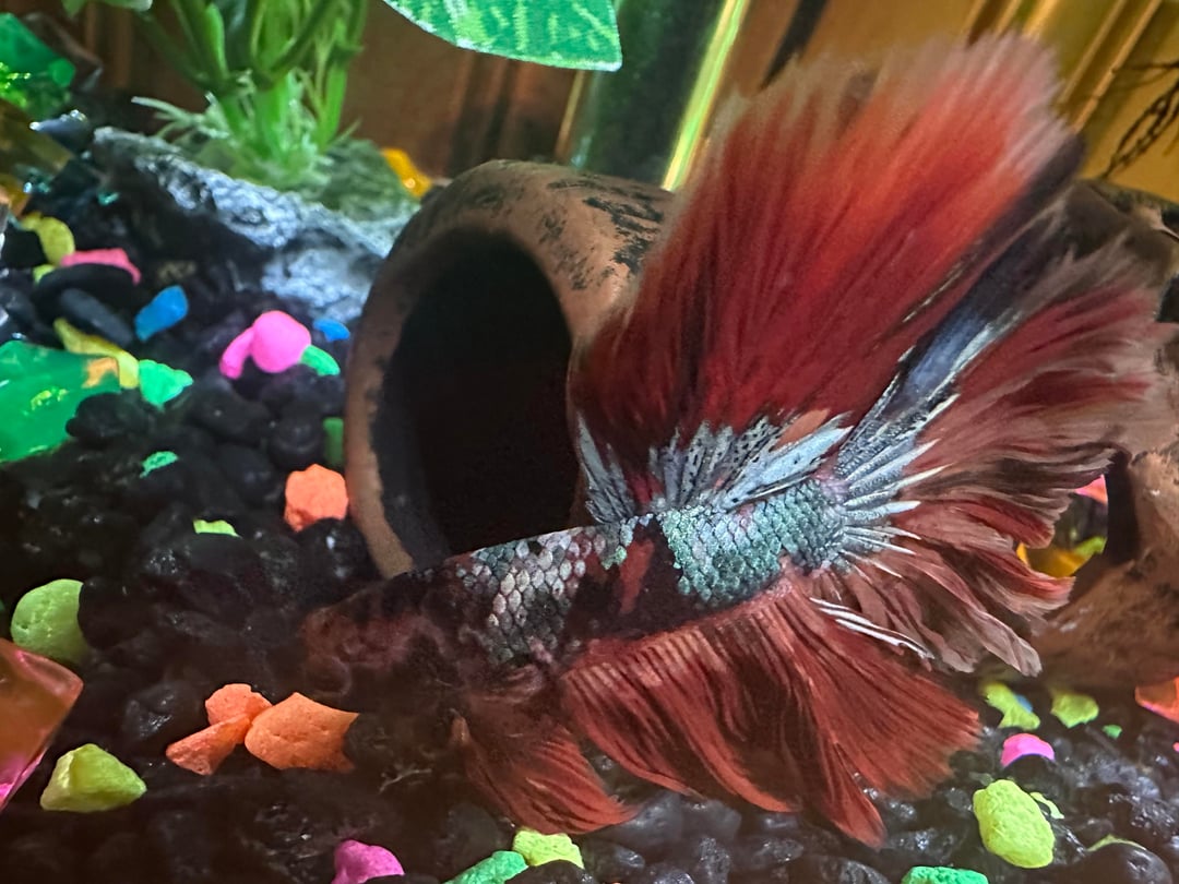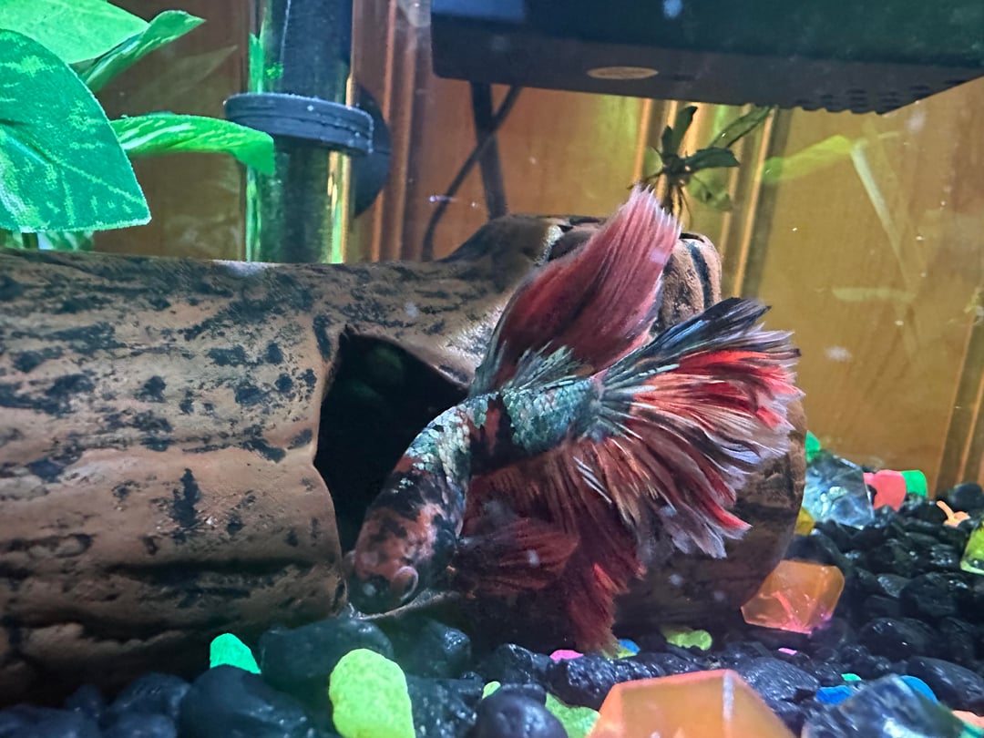 I’ve had my betta since a couple days before Christmas Eve. He was a gift from my supervisor at work (🫠) so I had to fish in cycle. I bought a 3 gal tank to upgrade him from the .75gal she gave him to me in. I’ve been changing the water 2-3 x/ week, about 30%, I’ve been dosing with seachem prime and stability daily, I’ve been feeding fluval bug bites and freeze dried blood worms (1-2 worms/day and 4-8 pellets/ day). The tank isn’t cycled yet(despite my efforts) and it seems like he has ammonia spots. His face has turned pretty black from bright and colorful and he has another black spot on his body. I’m just worried that I dont have the knowledge to take care of him or I’m messing it up somehow and someone else could do better. Wdyt? Earlier pics are first and new pics later. Disregard the circle I drew on the first pic— that was just an earlier pic of Rufio that I had.