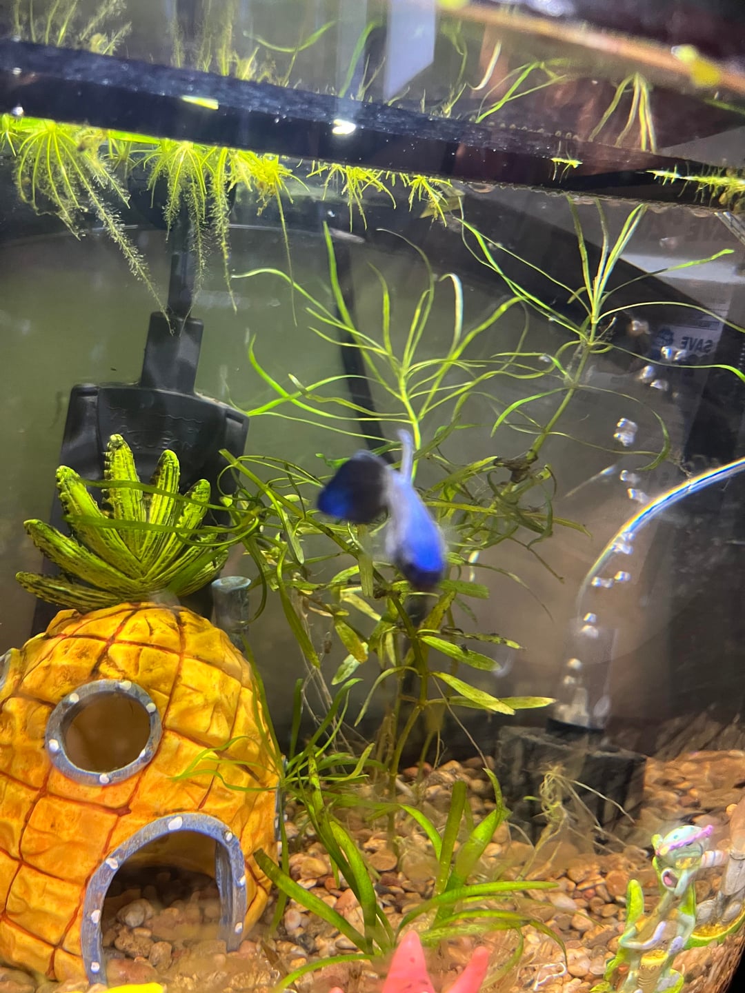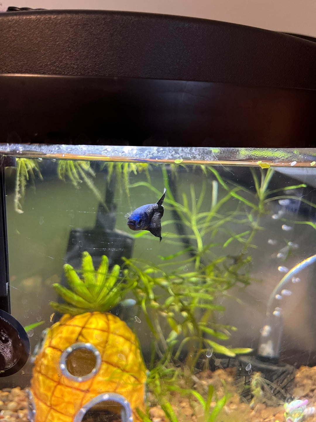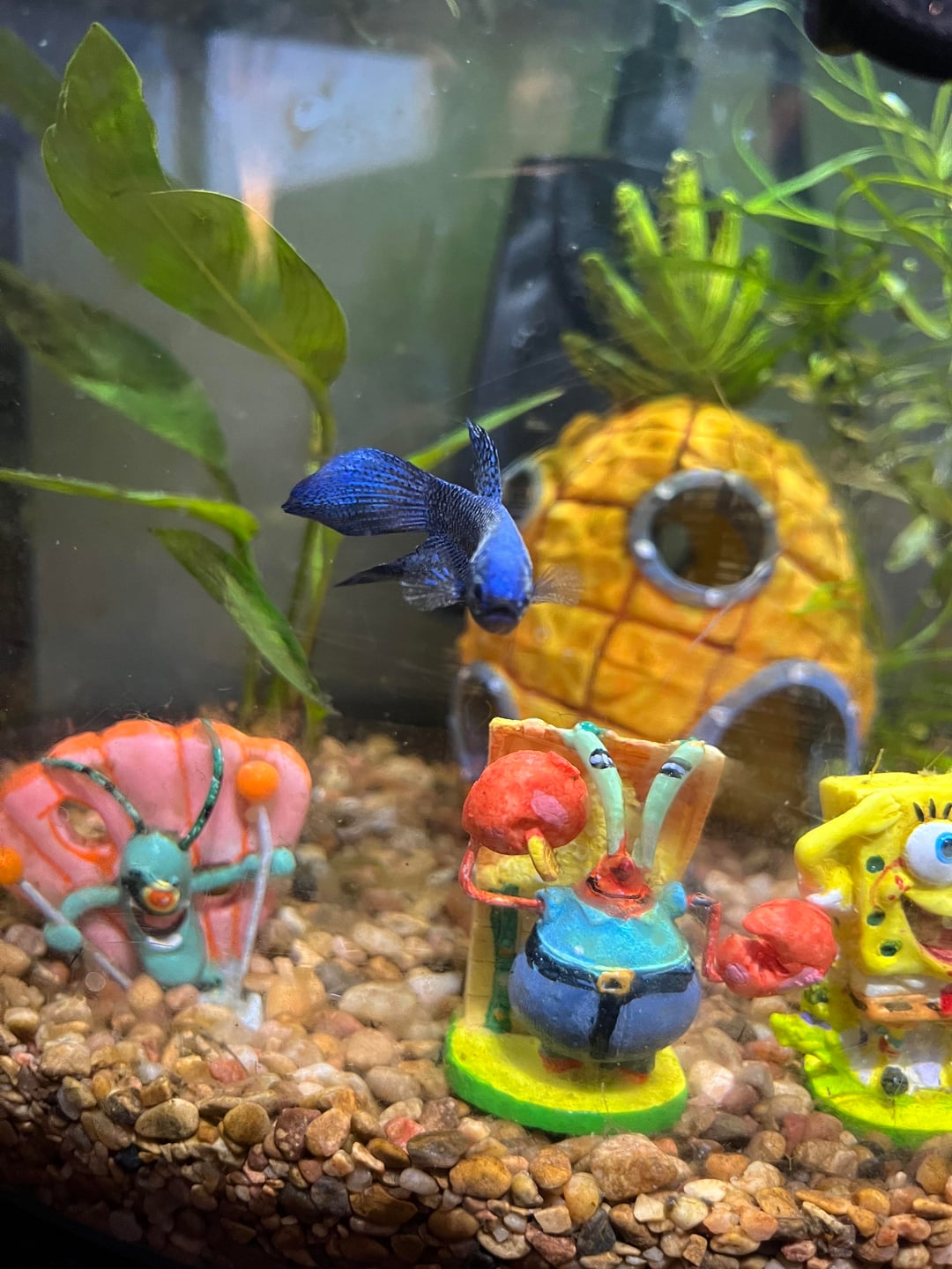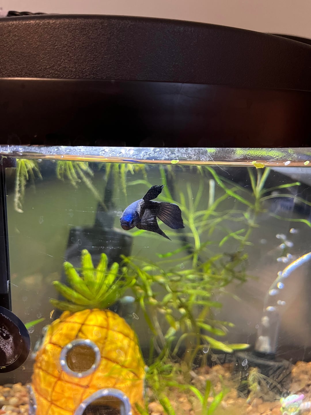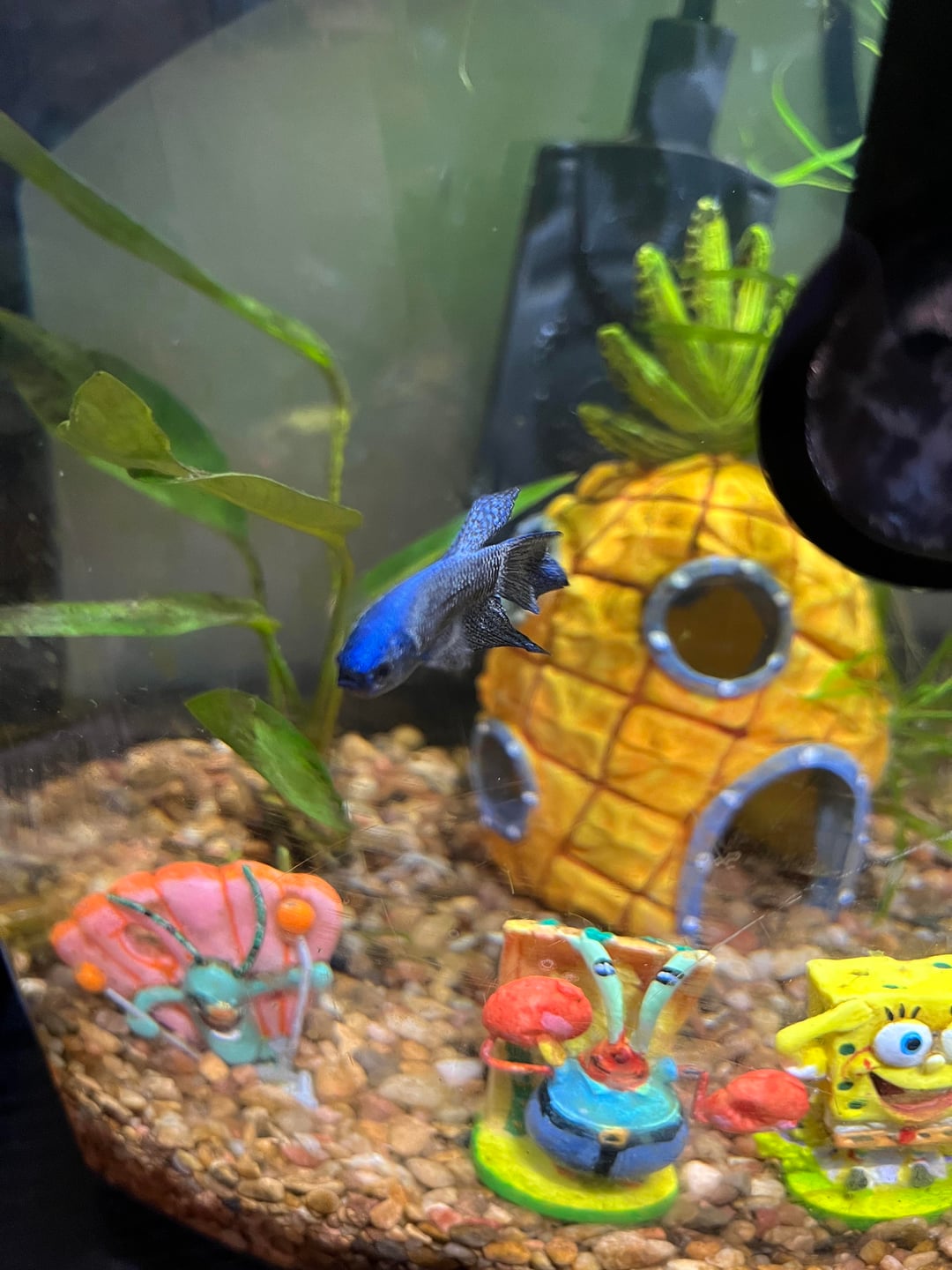 He is in a 5 gallon tank, the water temp is around 78-80, he is the only fish in the thank, I do have live plants, he is fed a mix of pellets and blood worms, last time I checked his water a few weeks ago it was within normal limits but I need to check it today again.