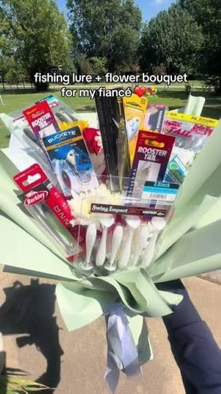 Hello everyone! I’m extremely new to fishing but my boyfriend loves fishing. For Valentine’s day, I wanted to make him a bouquet with fishing lures and bait in it (see inspiration photos). However, I have no clue what to get or what would be of use to him.