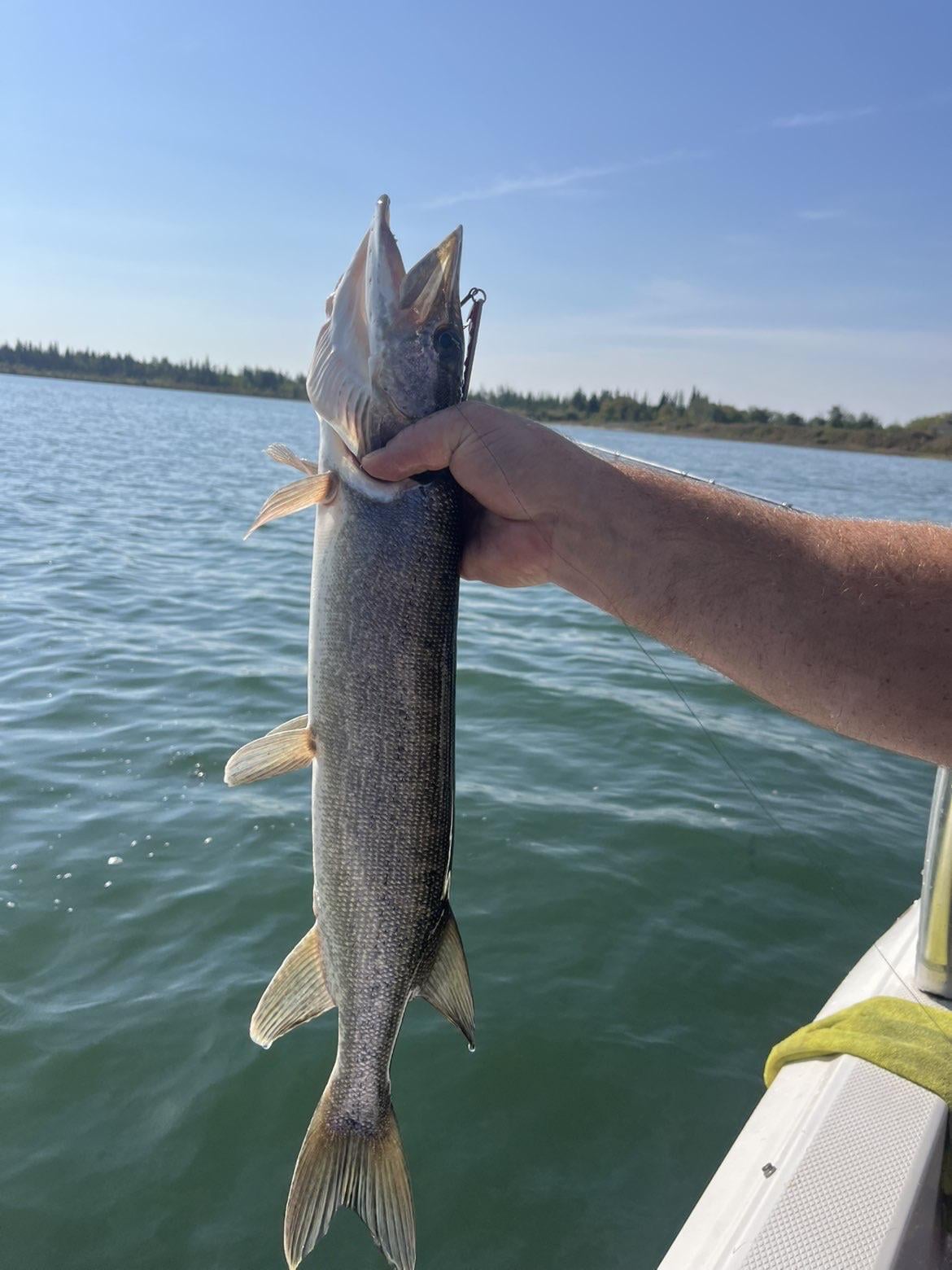 Is it possibly a young musky? Maby it’s just angle but it’s upper mouth looks a bit different too.