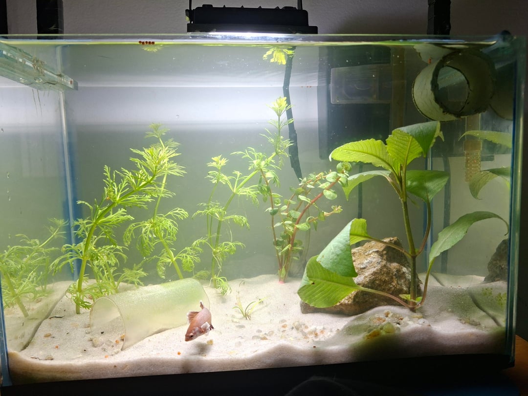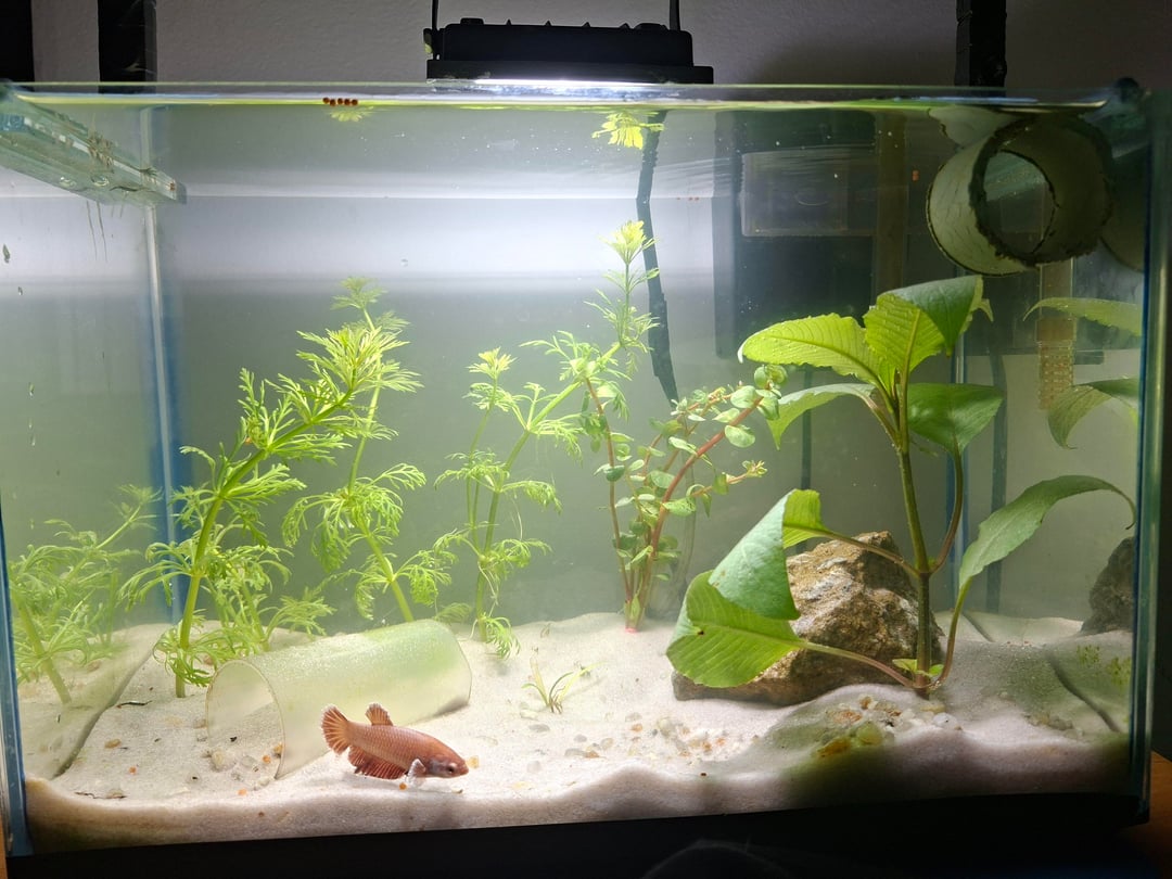 I’m asking because I feel like this tank is pretty bare and bright: too little plants, (therefore) not enough hiding/shadow spots.
