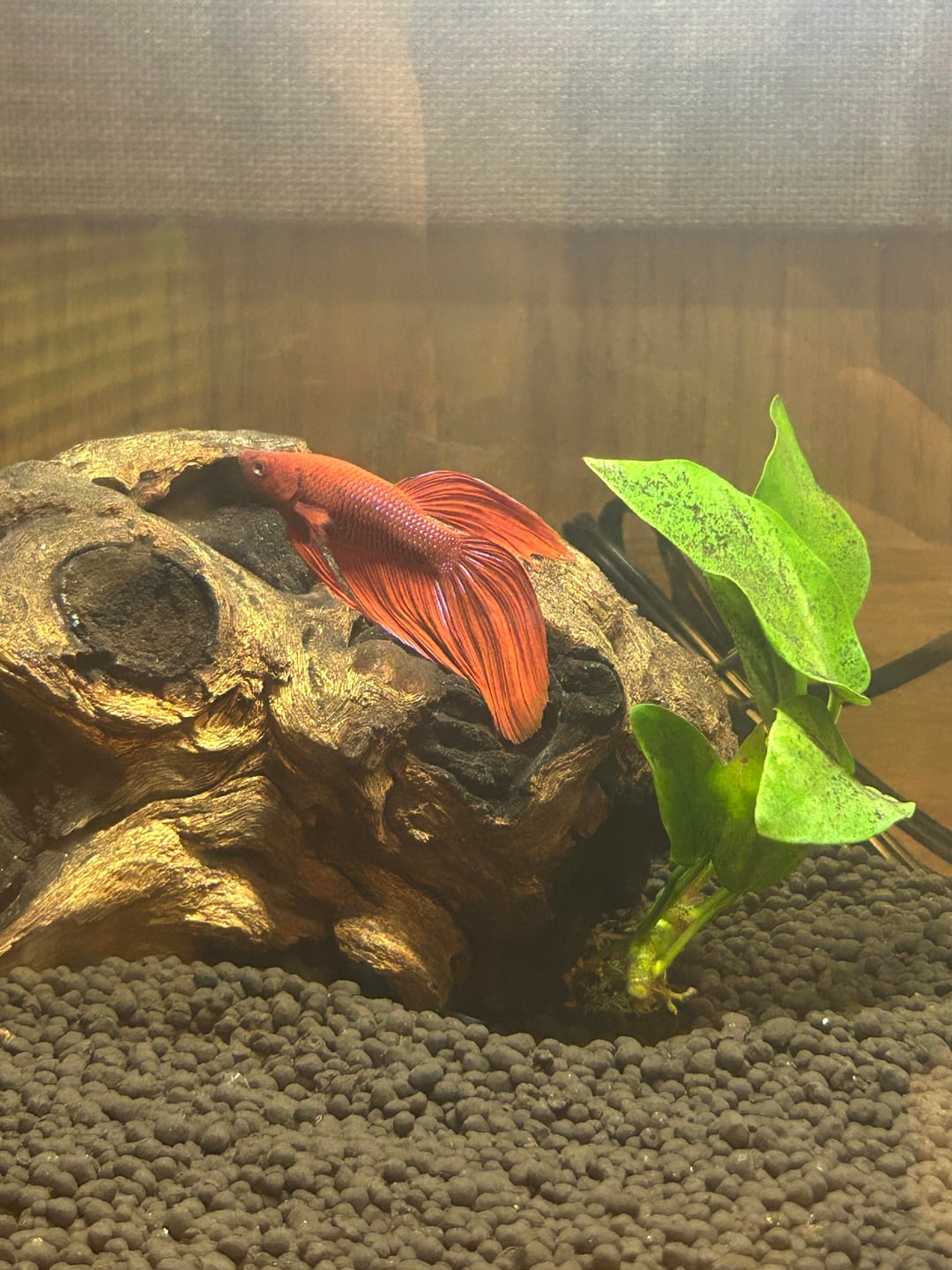 Cute fish! I’m so glad you did your research because most fish owners don’t! A little tip for you fish tank is first are the plants you have in the tank plastic? If they are I would remove them because it can rip their fins, I would do silk or live ( live plants have so many benefits) but silicone can leak chemicals into the water and if it’s painted the paint can fall off and that’s obviously not good for the water- plastic can do the same with the paint (if it’s painted) and the chemicals. Also I would add more plants (live or silk) because bettas LOVE to hide!! Also one last thing is I would get a betta leaf or a betta log because bettas love to hang out near the surface! (Oh yeah and make sure the water flow isn’t to fast/hard but in the pictures it doesn’t look like it is!!!