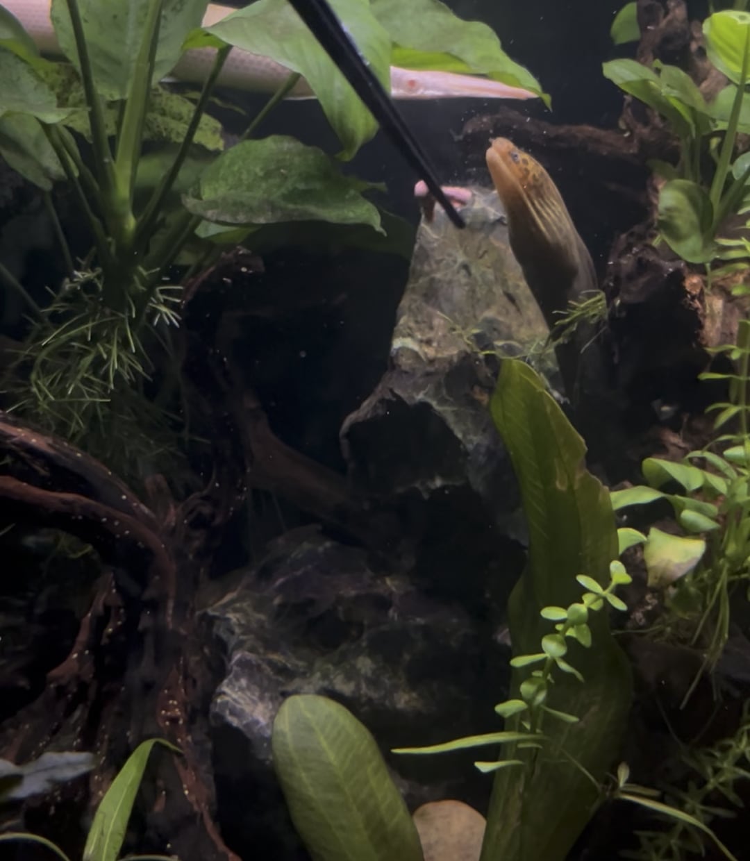 brown-tube on February 2, 2026 2:07 am true freshwater moray eel? what species is this? very cool to see a monster lurking around in a planted aquarium like yours.