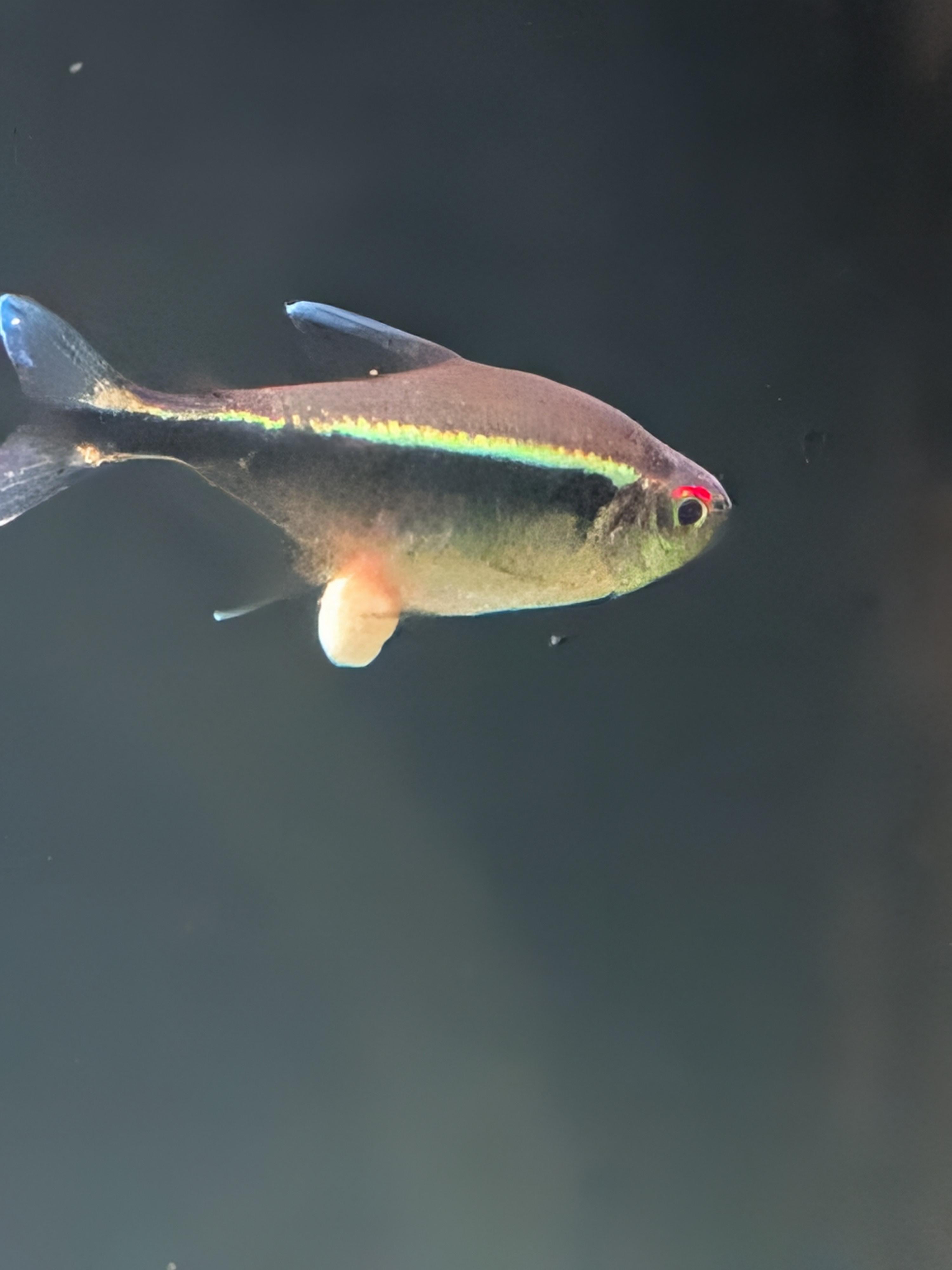 Have a school of Black Neon Tetras. Noticed this on one of them this morning. I just started treating the tank with Ich-X two days ago (you can see a couple specs on this one's fins), not sure if this is a side effect or just coincidence?