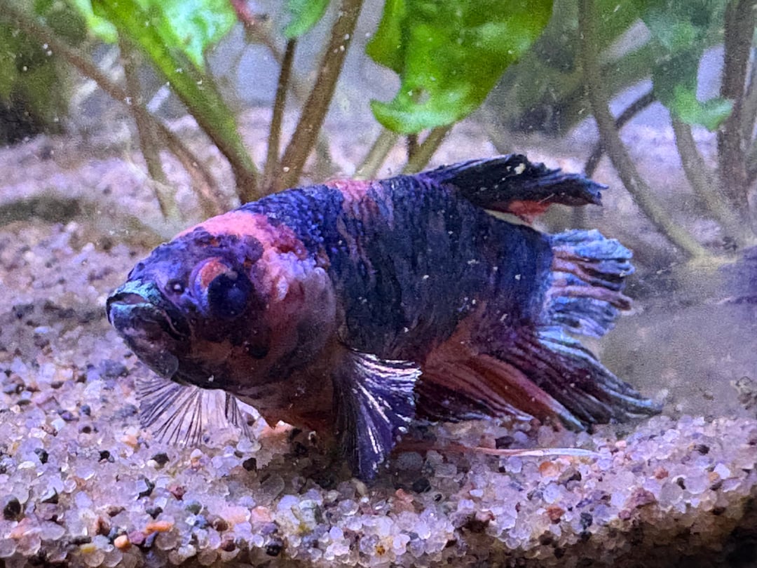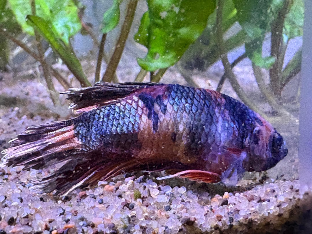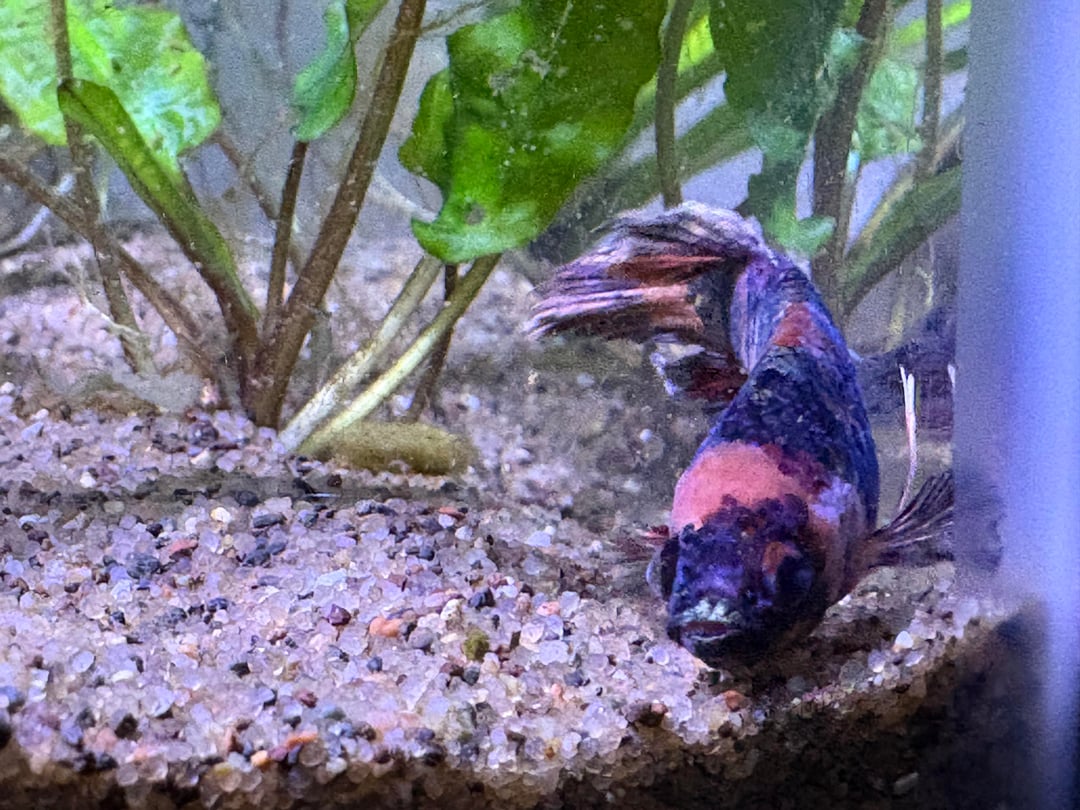 he was supposedly at the LFS for 3-4 months… poor guy. he’s now in my 5gal planted tank with a baby ramshorn infestation but otherwise all by himself.