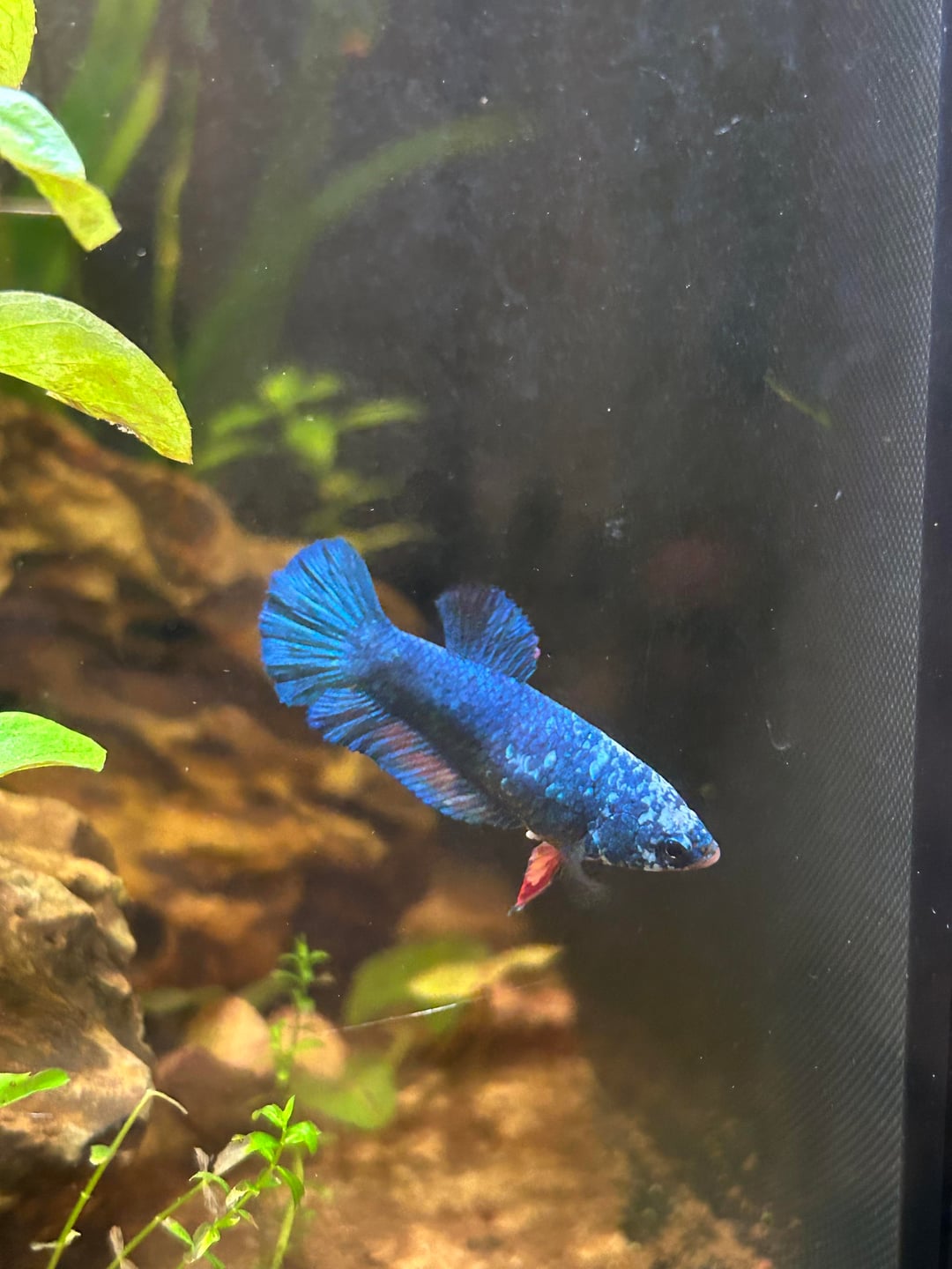 What a beautiful girl! My girl Zesty looked a lot like that first pic when I got her, but she had a bit of dull blue on her back half. Notice the clamped fins as well, her body language looks so much more confident and comfortable in your last two pictures! She’s clearly a very happy girl.