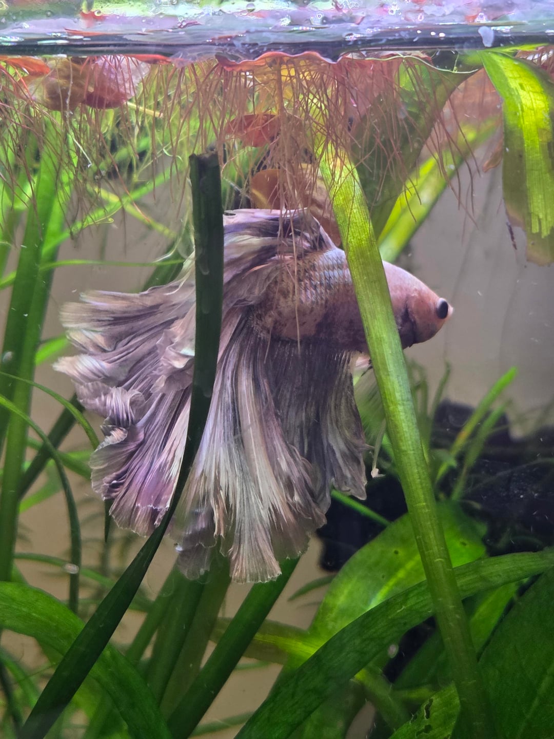 Jeans fins have grown alot since ive gotten him. I have been worried about his fins though since the ends look so ruffled and unhappy? He was labeled as a delta but I saw a post that rose tails have petals at the ends of their tails that can be mistaken for finrot. Last photo is of when I first got him
