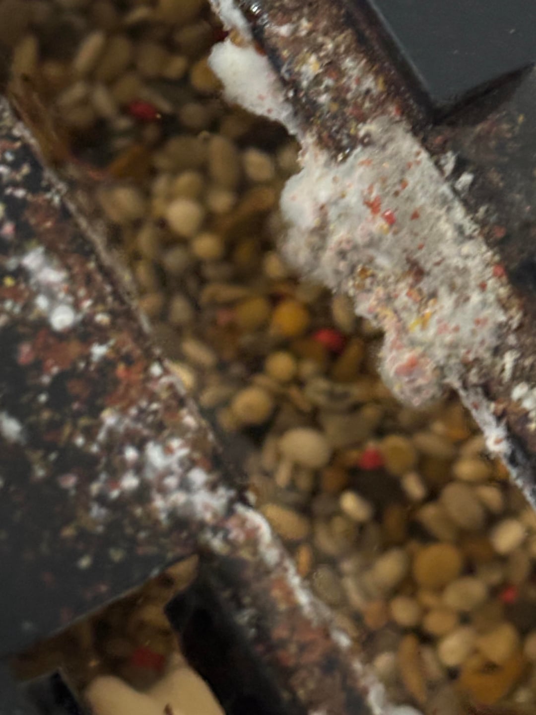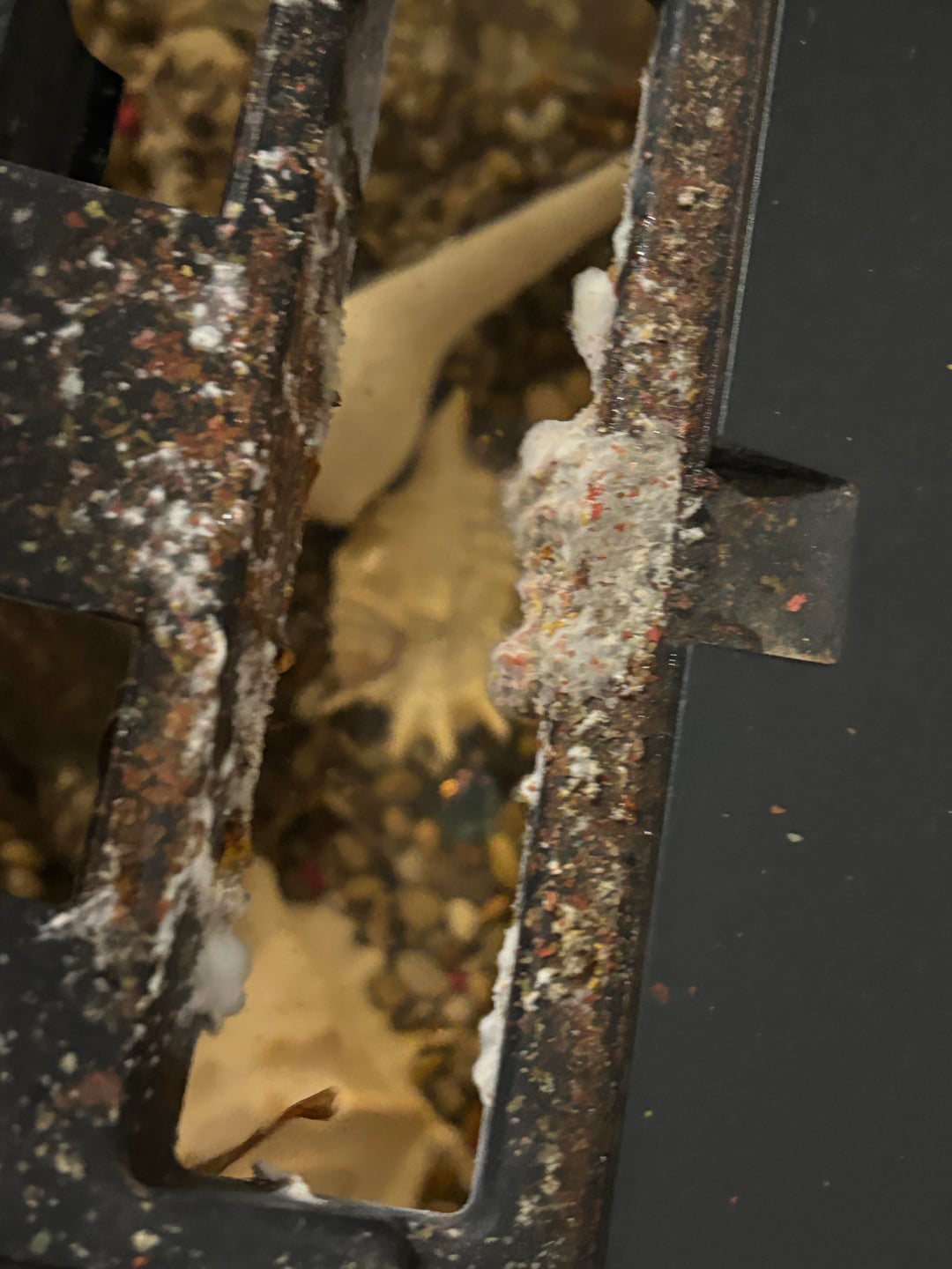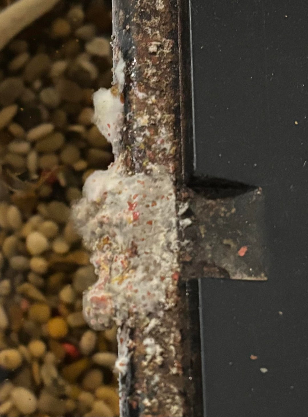 Looks like the food sat there with moisture and grew mold. This has happened to my tank at the flap where you open for feeding. I’d just wipe it off and make sure you try to avoid spilling the food on the edges there if you can! 💗