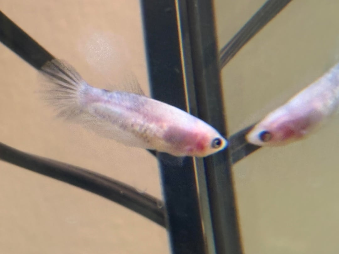 For example… one of my bettas, Spirit (got him when he was completely white like this), is now almost 2 years old and is fully dark blue with splashes of red 😂