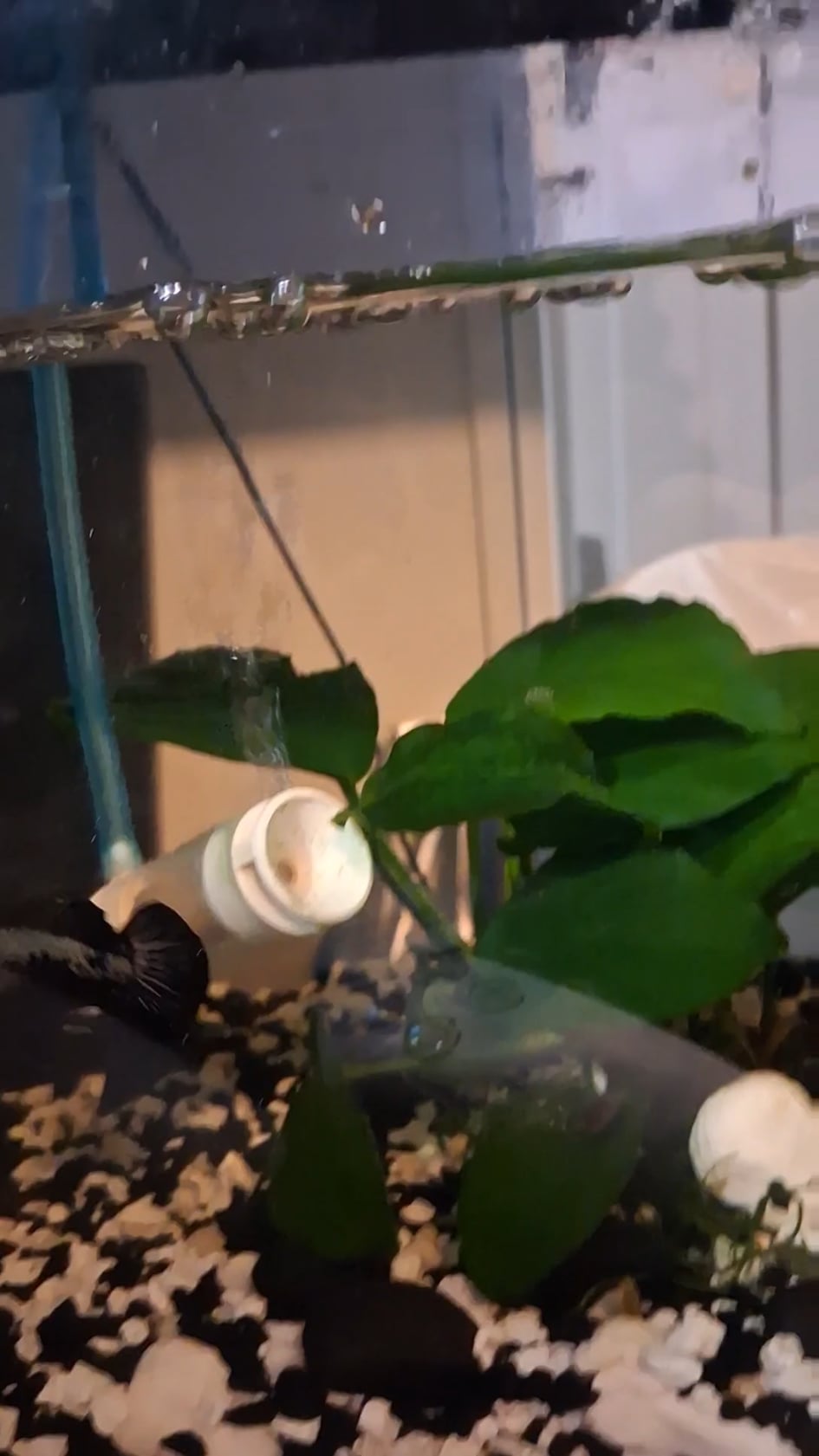 Aquariums: My son’s (8yrs) first tank. Meet Bob. Bobs a Samurai Warrior! And yes, he put in way too many food pellets (my son, not Bob) that we now have to clean up. [10g tank]
